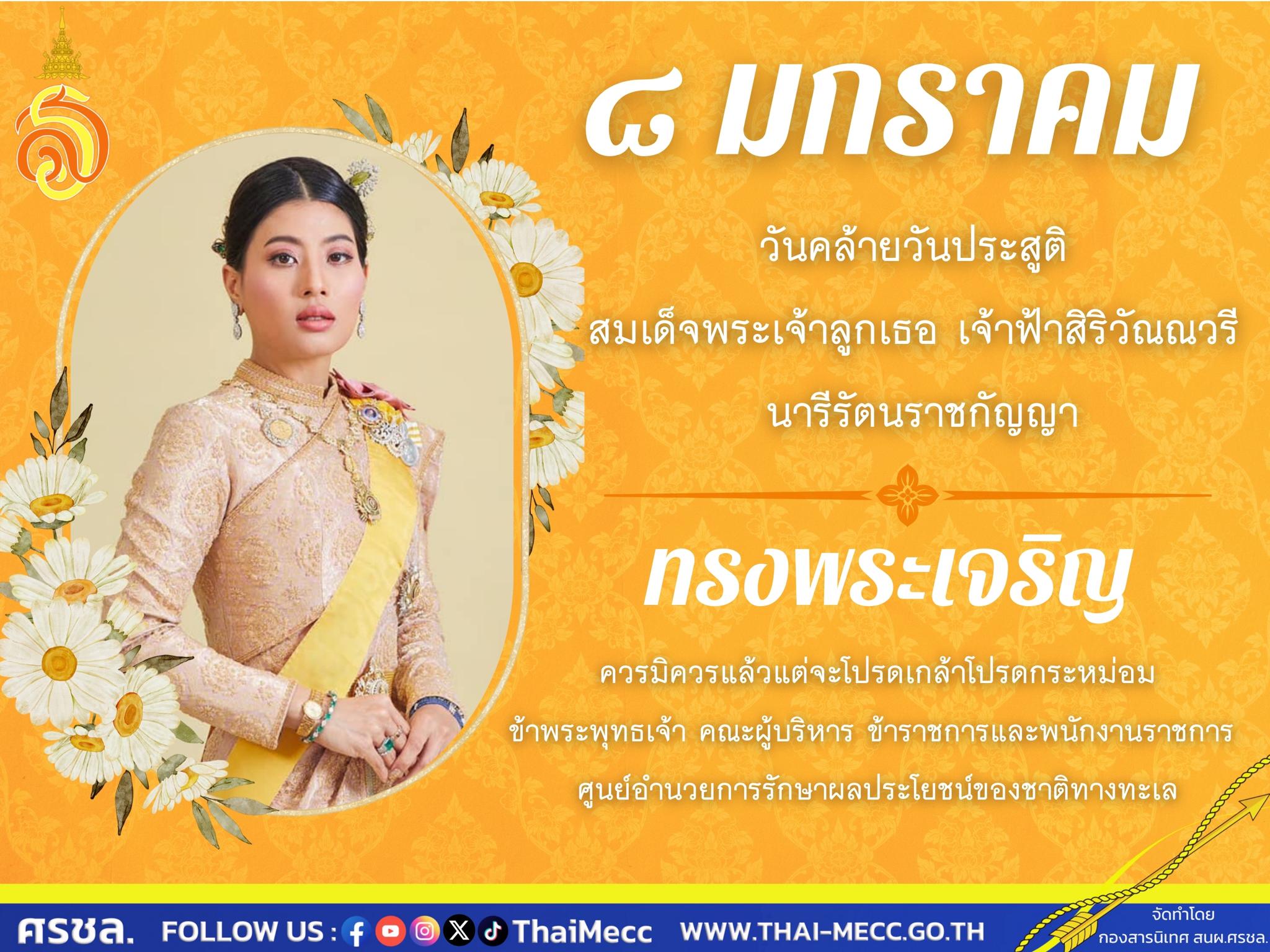 ในวันพฤหัสบดีที่ ๘ ม.ค.๖๙ เวลา ๐๙๐๐ ศรชล.ภาค ๓ โดย น.อ.ดุสิต จันทร์ราช รอง ผอ.ศรชล.จว.ตรัง เข้าร่วมพิธีเจริญพระพุทธมนต์เฉลิมพระเกียรติ เนื่องในโอกาสวันคล้ายวันประสูติ สมเด็จพระเจ้าลูกเธอ เจ้าฟ้าสิริวัณณวรี นารีรัตนราชกัญญา เนื่องในโอกาสวันคล้ายวันประสูติ ๘ มกราคม ๒๕๖๙ เพื่อเป็นการแสดงออกถึงความจงรัก...