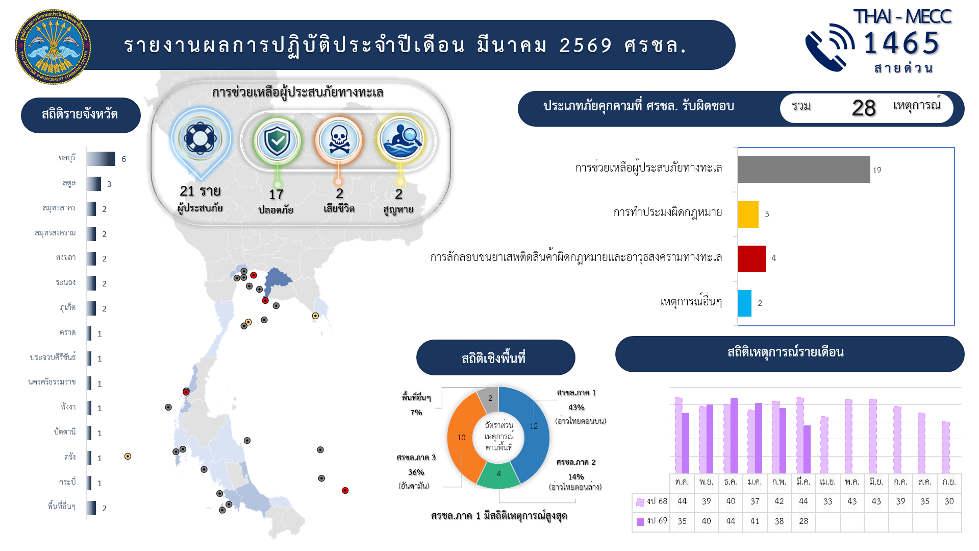 สรุปสถานการณ์ทางทะเล ประจำเดือน มี.ค.69