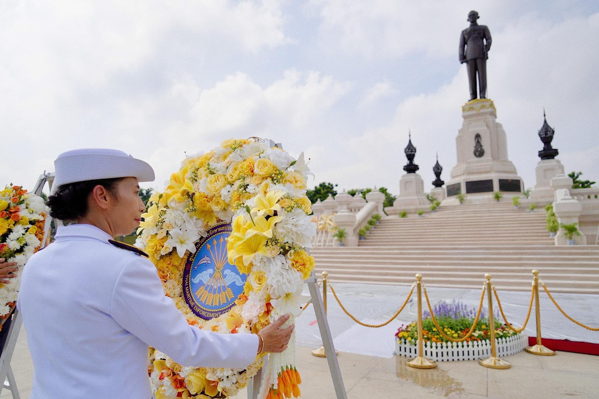 ในวันที่ 13 ตุลาคม 2568 เวลา 09.00 น. นางราณี อุปการะกุล ผู้อำนวยการสำนักบริหารกลาง ศรชล. พร้อมคณะ ร่วมวางพวงมาลาถวายราชสักการะ พระบรมราชานุสาวรีย์พระบาทสมเด็จพระบรมชนกาธิเบศร มหาภูมิพลอดุลยเดชมหาราช บรมนาถบพิตร เนื่องใน วันนวมินทรมหาราช 13 ตุลาคม 2568 ณ อุทยานเฉลิมพระเกียรติพระบาทสมเด็จพระบรมชนกาธิเบศร มหาภูมิพลอดุลยเดชมหาราช บรมนาถบพิตร เขตดุสิต กรุงเทพมหานคร โดยมีข้าราชการ ศรชล. ร่วมน้อมระลึกถึงพระราชกรณียกิจและโครงการพระราชดำริที่ทรงทุ่มเทเพื่อประโยชน์ของประชาชนและประเทศชาติเป็นเวลาอันยาวนาน พร้อมยึดมั่นคำสอนของพระองค์ที่ทรงให้ไว้เพื่อให้คนไทยดำเนินชีวิตอย่างพอเพียง พึ่งพาตัวเองได้ และมุ่งมั่นจะสืบสาน รักษา ต่อยอด พระราชปณิธานและความดีงามตลอดไป
