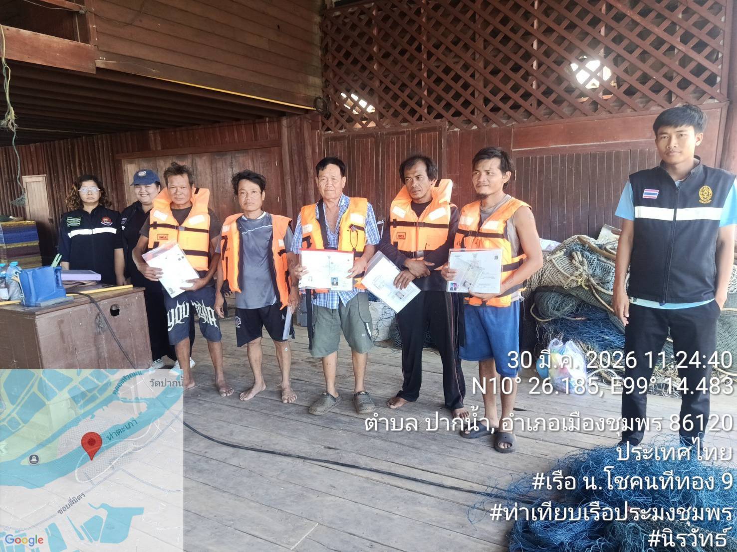 ในวันที่ 30 มีนาคม 2569 ศคท.จังหวัด ใน ศรชล.ภาค 2 บูรณาการตรวจท่าเทียบเรือ แพปลา เรือประมง และลูกเรือร่วมกับชุดสหวิชาชีพตรวจเรือประมงส่วนหน้า (FIP) และหน่วยงานรัฐในพื้นที่ รวมทั้งประชาสัมพันธ์สร้างการรับรู้การสวมเสื้อชูชีพขณะออกทำการประมง
