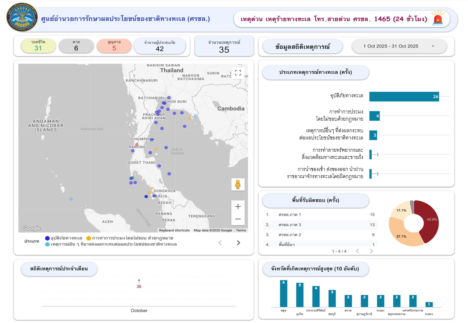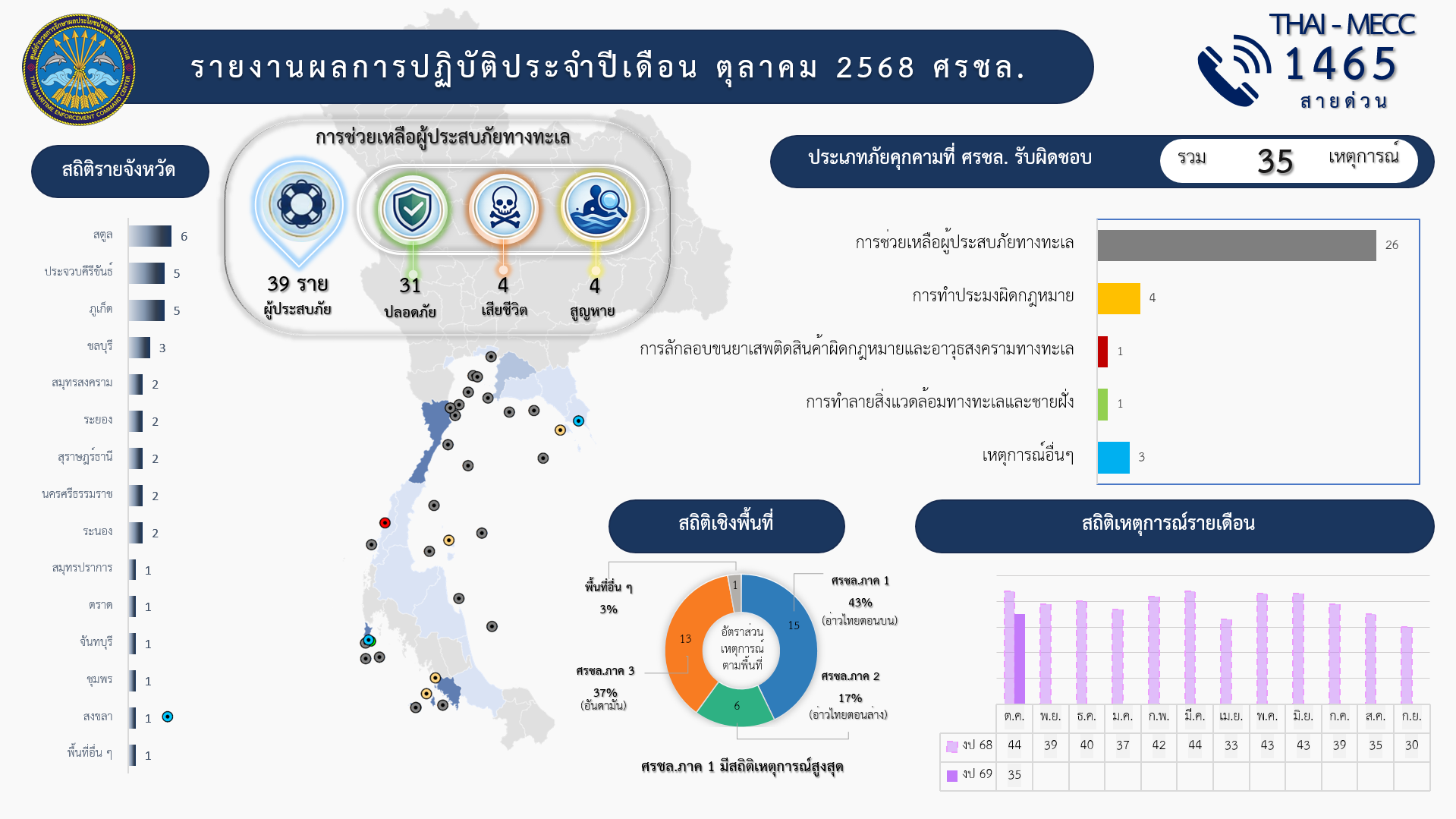 สรุปสถานการณ์ทางทะเล ประจำเดือน ต.ค.68