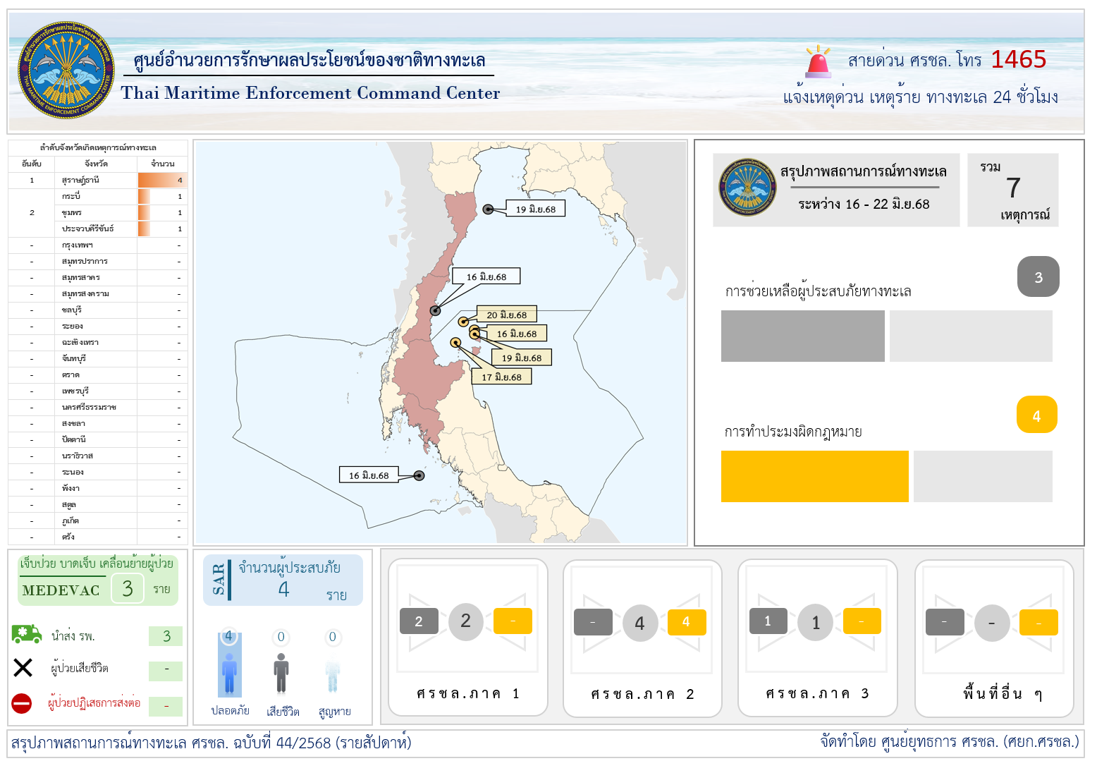 สรุปภาพสถานการณ์ทางทะเล ระหว่างวันที่ 16 - 22 มิ.ย.68