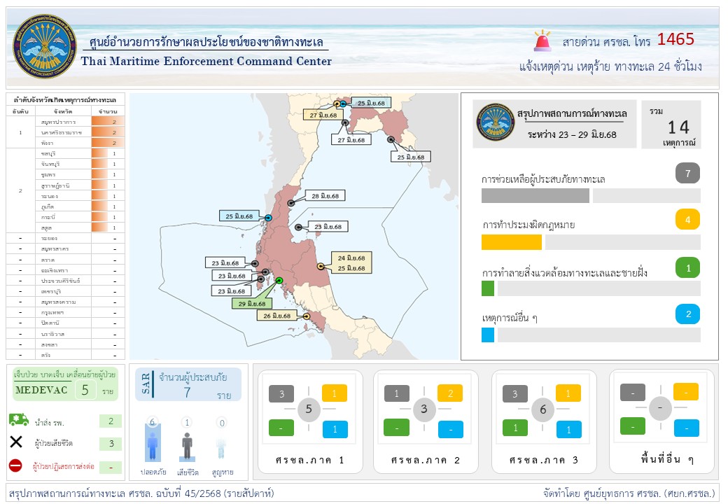 สรุปภาพสถานการณ์ทางทะเล ระหว่างวันที่ 23 - 29 มิ.ย.68