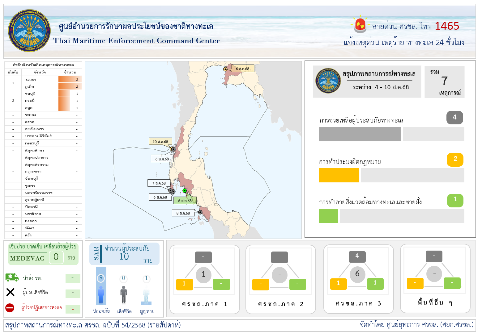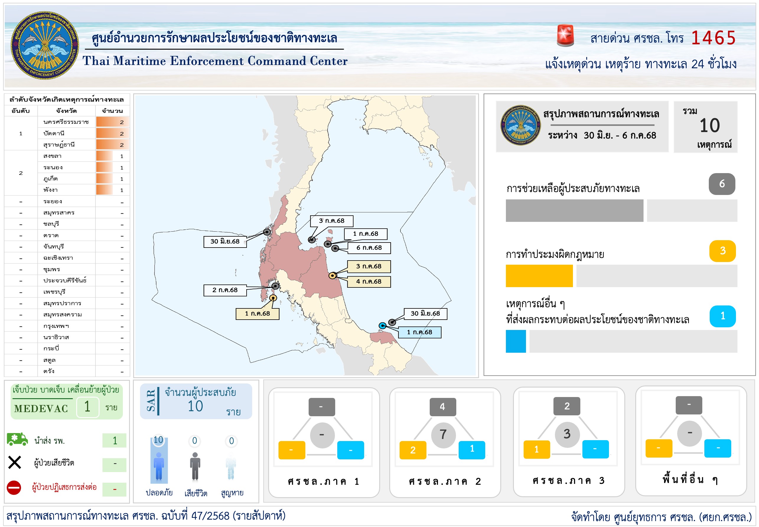 สรุปภาพสถานการณ์ทางทะเล ระหว่างวันที่ 4 - 10 ส.ค.68