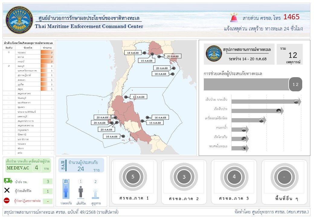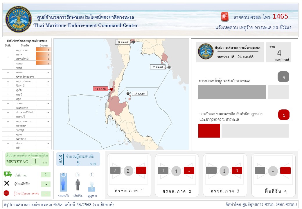 สรุปภาพสถานการณ์ทางทะเล ระหว่างวันที่ 18 - 24 ส.ค.68