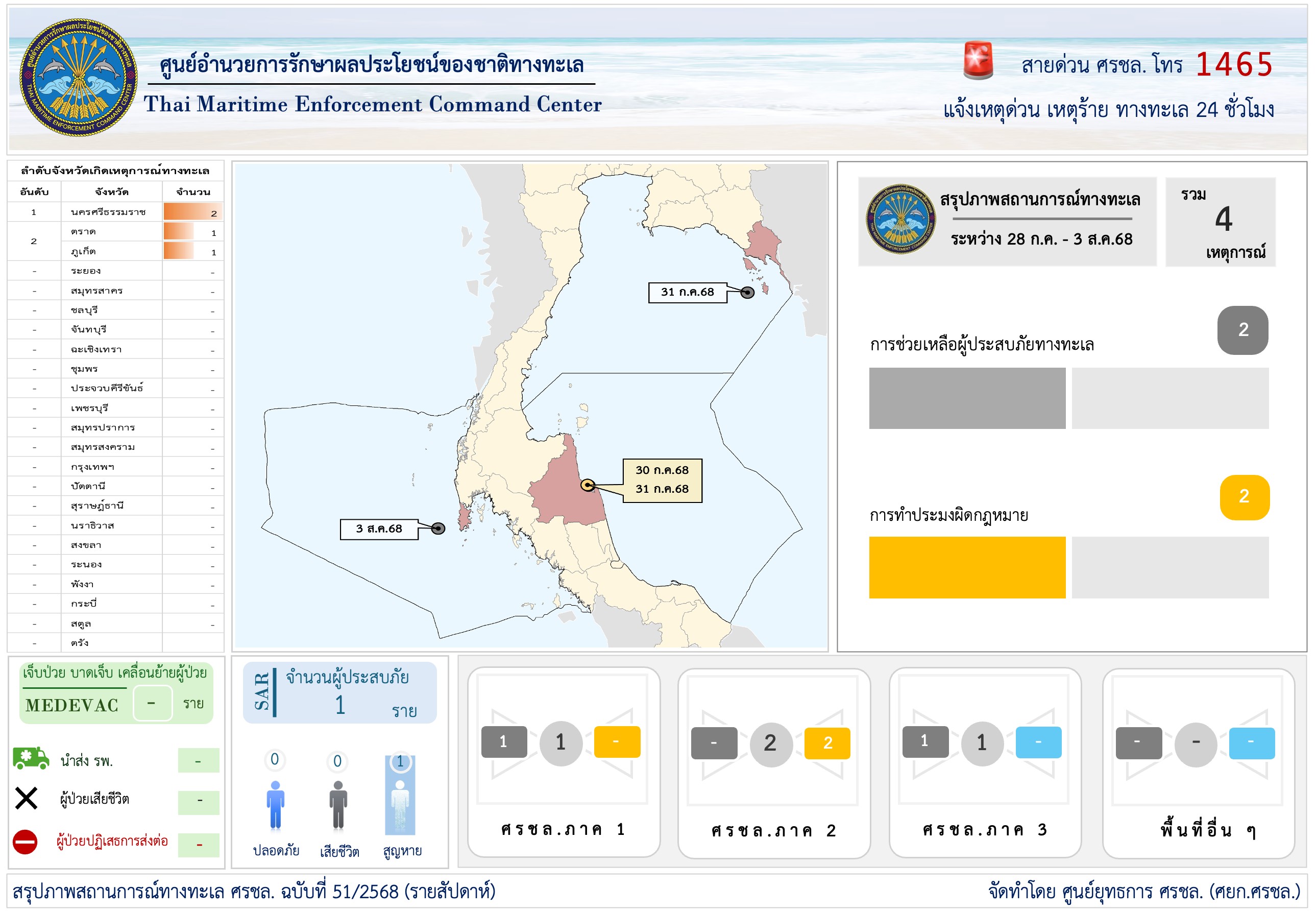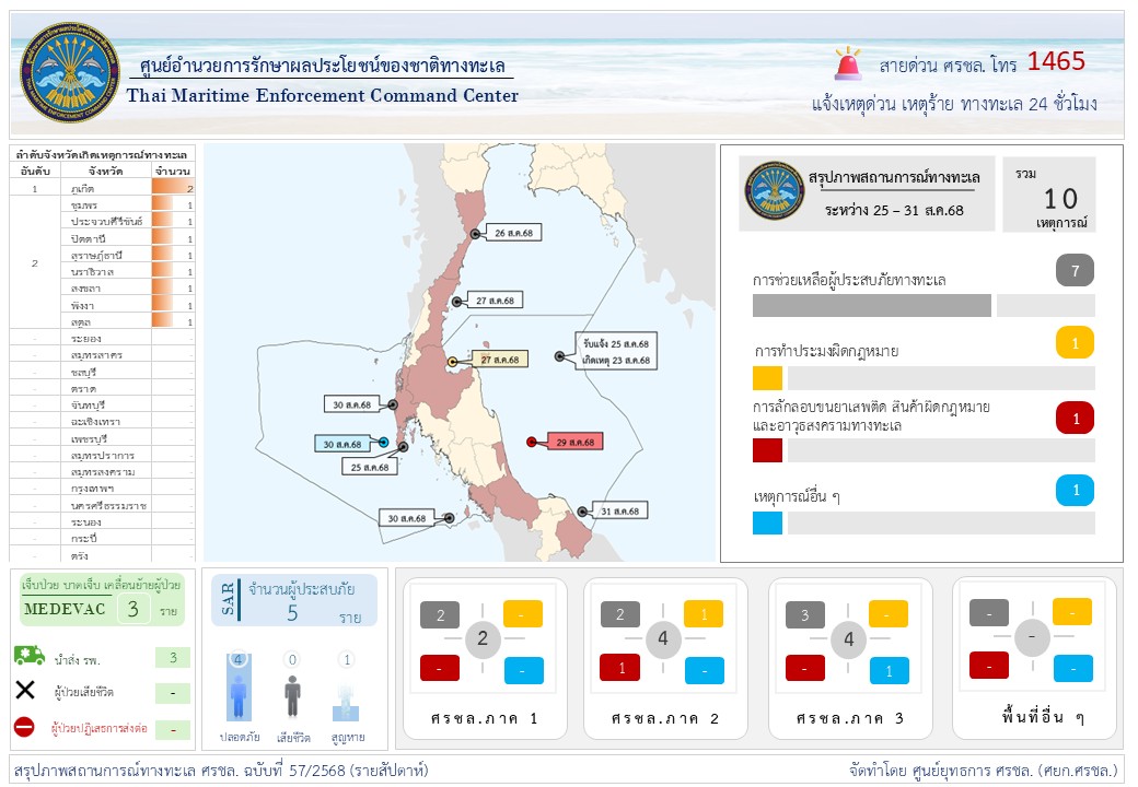 สรุปภาพสถานการณ์ทางทะเล ระหว่างวันที่ 25 - 31 ส.ค.68