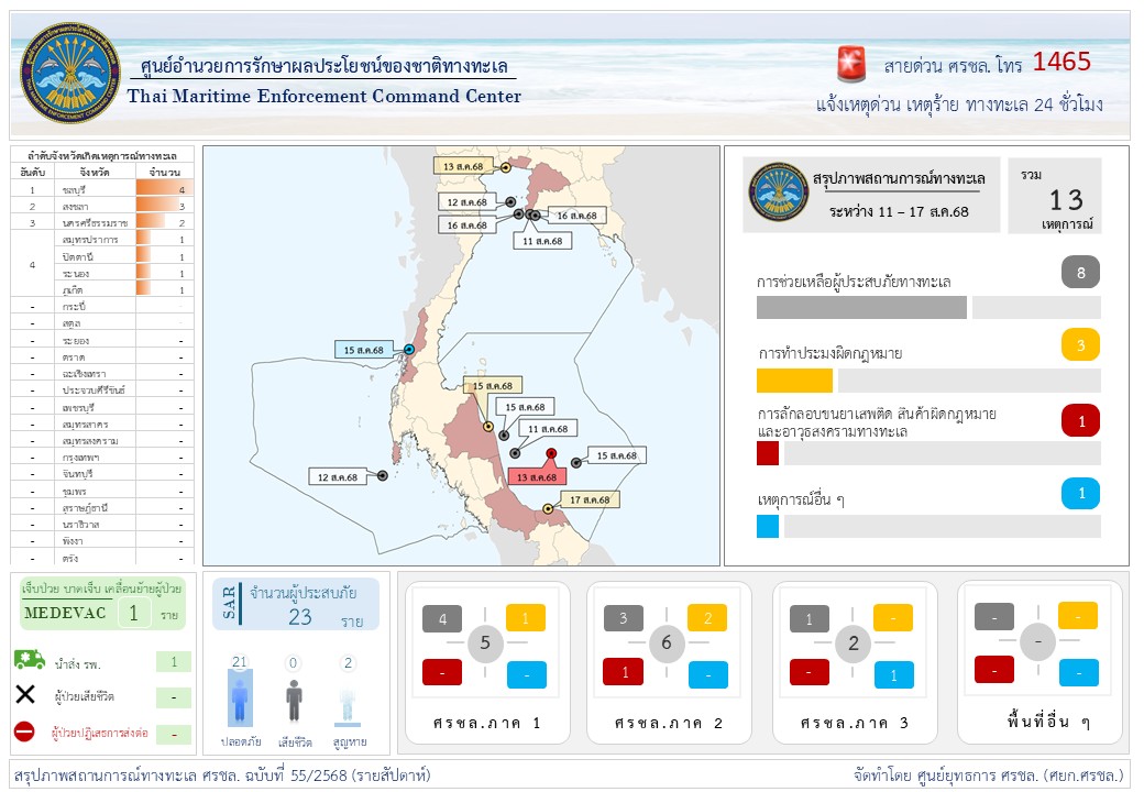 สรุปภาพสถานการณ์ทางทะเล ระหว่างวันที่ 11 - 17 ส.ค.68