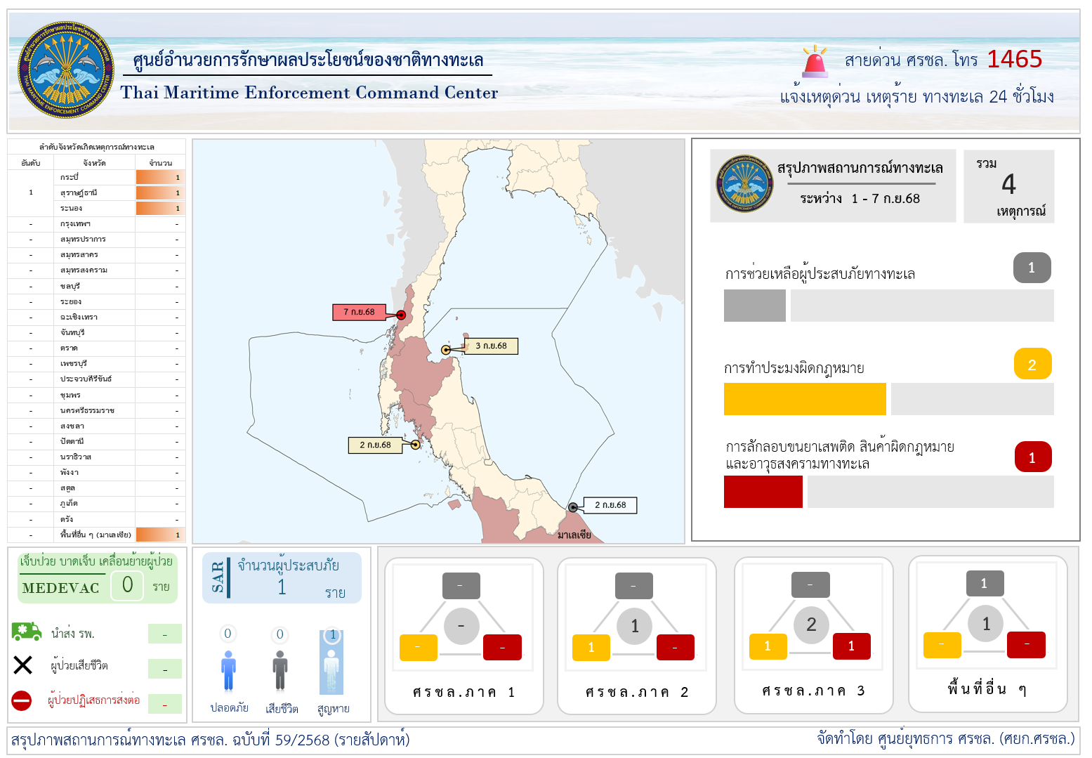 สรุปภาพสถานการณ์ทางทะเล ระหว่างวันที่ 1 - 7 ก.ย.68