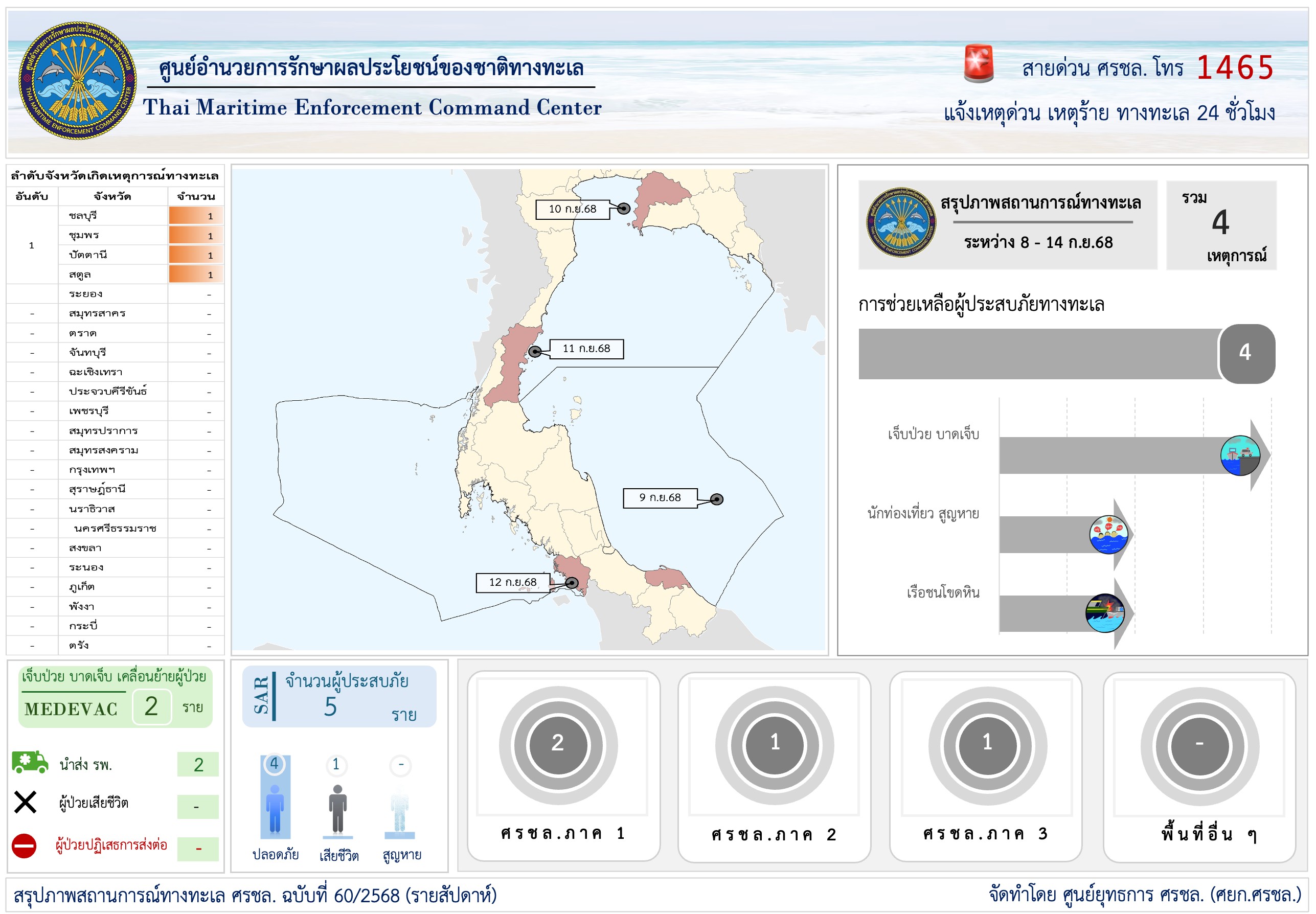 สรุปภาพสถานการณ์ทางทะเล ระหว่างวันที่ 8 - 14 ก.ย.68