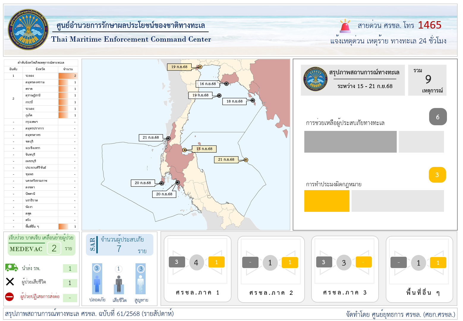 สรุปภาพสถานการณ์ทางทะเล ระหว่างวันที่ 15 - 21 ก.ย.68