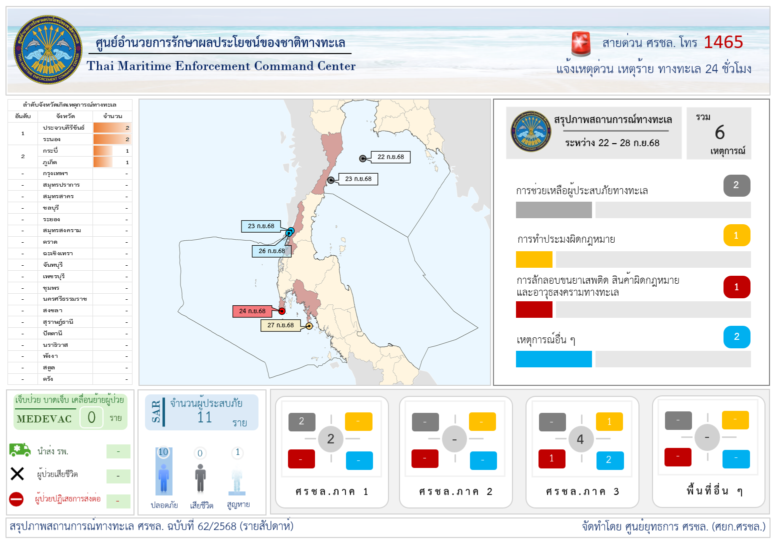 สรุปภาพสถานการณ์ทางทะเล ระหว่างวันที่ 22 - 28 ก.ย.68