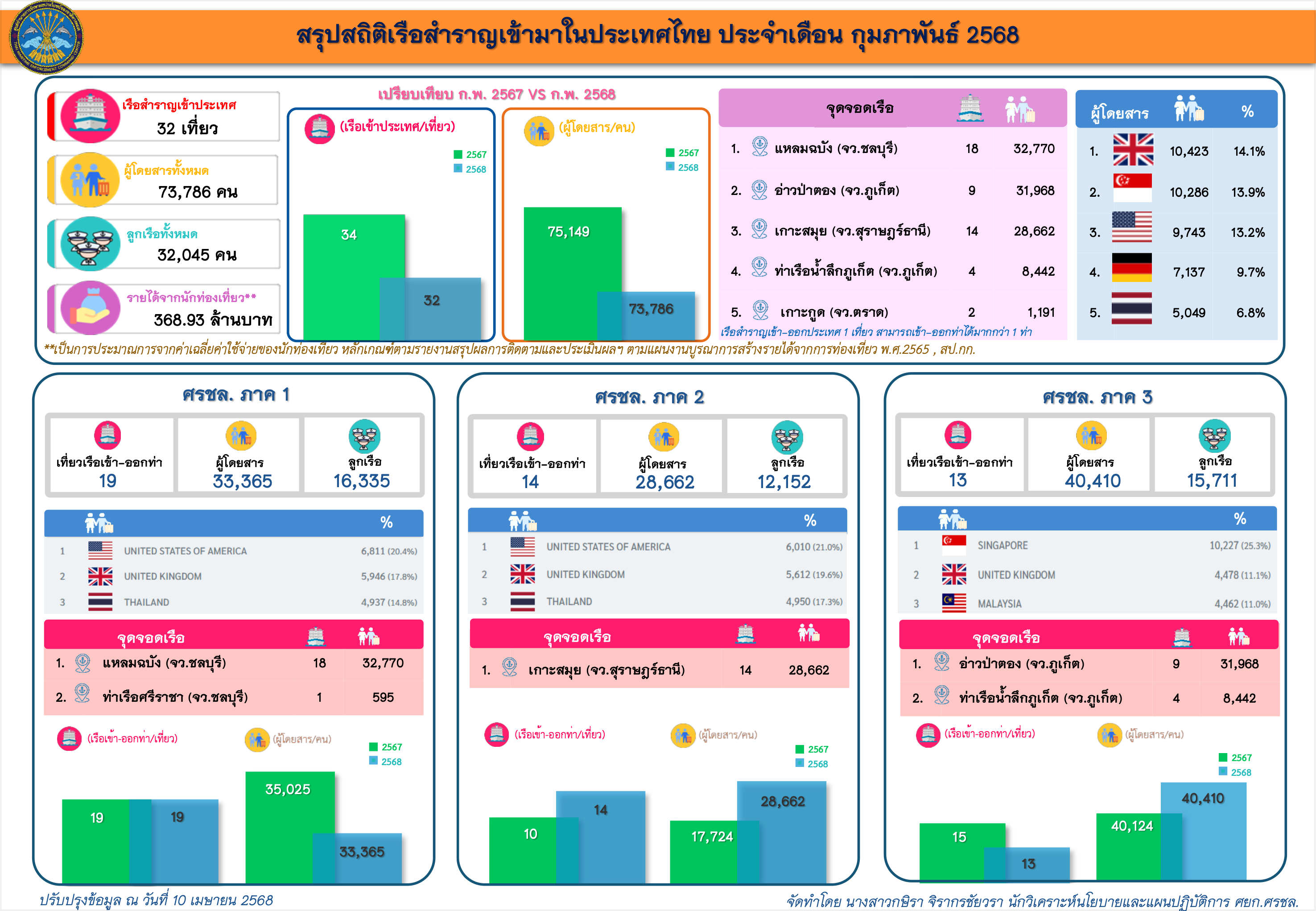 สรุปสถิติของเรือสำราญเข้ามาในประเทศไทย ประจำเดือน กุมภาพันธ์ 2568