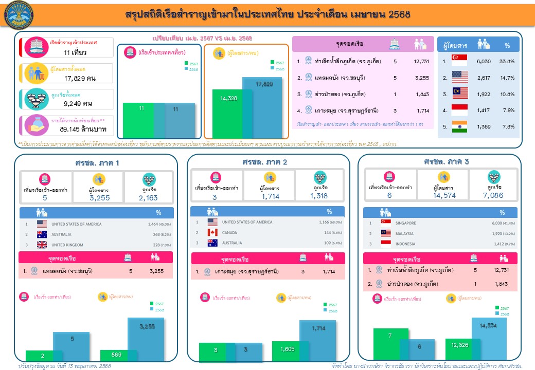 สรุปสถิติของเรือสำราญเข้ามาในประเทศไทย ประจำเดือน เมษายน 2568