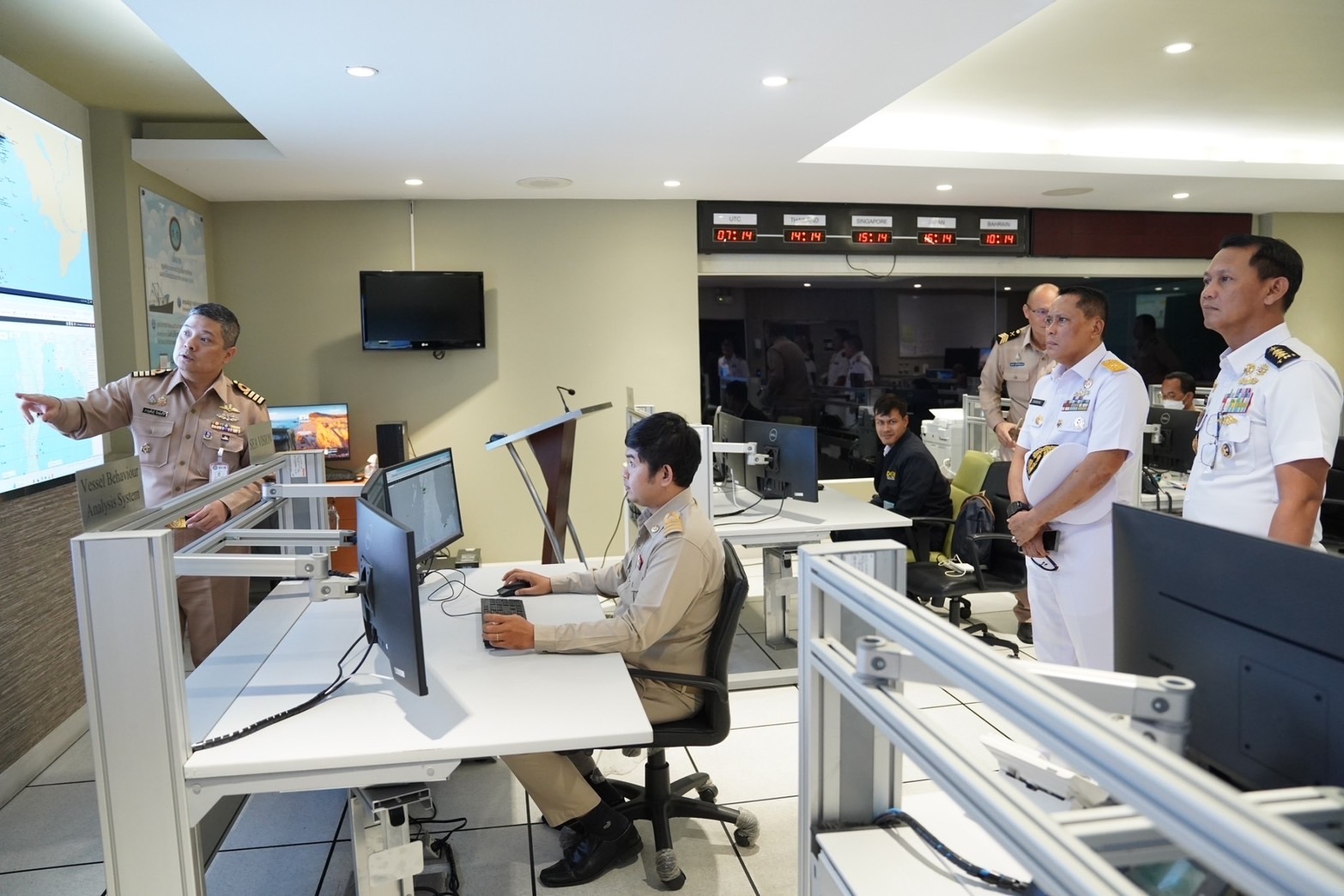 ในวันที่ 3 ธ.ค.67 พล.ร.ท.ดนัย สุวรรณหงษ์ ผู้อำนวยการศูนย์ยุทธการ ศรชล. มอบหมายให้ น.อ.ภาณุพันธุ์ รักษ์แก้ว ผู้อำนวยการกองดูแลระบบและติดตามสถานการณ์ ศยก.ศรชล. ให้การต้อนรับคณะ First Admiral Bambang Suseno จาก กองทัพเรืออินโดนีเซีย ในโอกาสมาเยี่ยมชมการปฏิบัติงานของศูนย์ยุทธการ ศรชล.