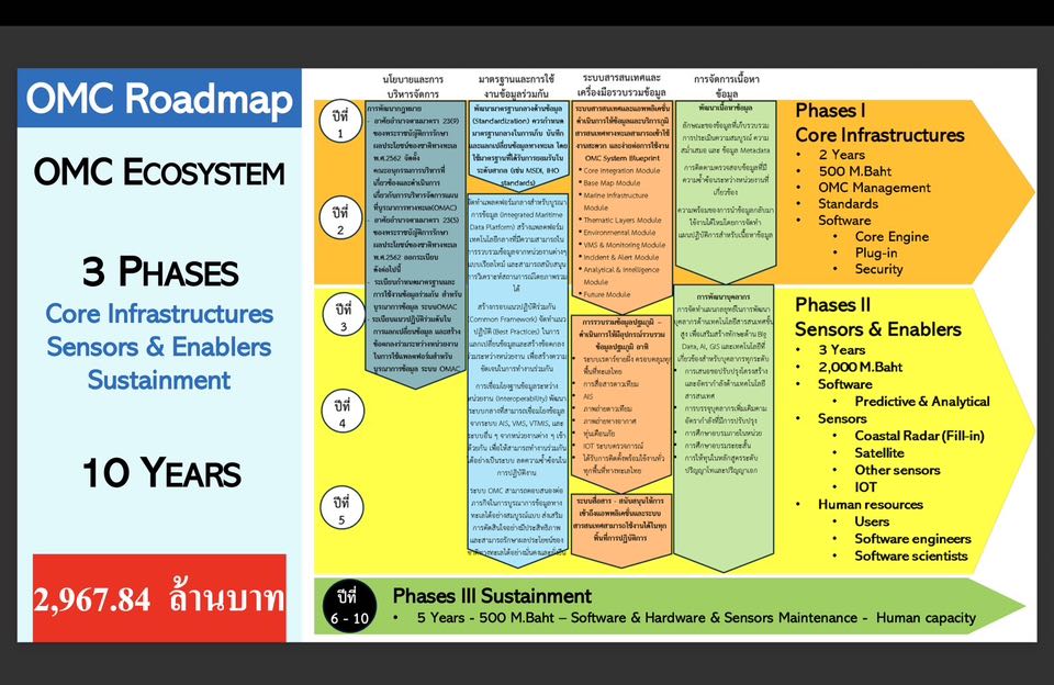 คณะวิจัยโดยคณาจารย์จากมหาวิทยาลัยบูรพาได้ทำการศึกษาพบว่าโครงการดังกล่าวจะต้องใช้เวลาทำต่อเนื่อง เป็น 3 ระยะ โดยมีความต้องการงบประมาณโดยรวม 2,967.84 ล้านบาท เพื่อให้ประเทศไทยได้มีแผนที่บริหารจัดการพื้นที่ทางทะเลของประเทศไทย ได้อย่างสมบูรณ์ในอนาคต