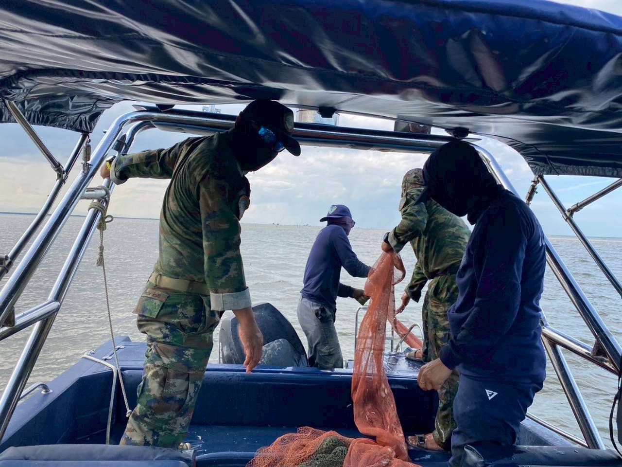 ในวันที่ 4 พฤศจิกายน 2568 ศรชล.จังหวัดนครศรีธรรมราช บูรณาการร่วมกับหน่วยป้องกันและปราบปรามประมงทะเลปากพนัง (นปท.ปากพนัง) ดำเนินการติดตาม/ตรวจสอบ ในพื้นที่อ่าวปากพนัง เพื่อปกป้องและรักษาผลประโยชน์ของชาติทางทะเลพื้นที่จังหวัดนครศรีธรรมราช ผลการดำเนินการ ตรวจพบเครื่องมือทำประมงผิดกฎหมายประเภทโพงพาง ท้องที่ตำบลปากพนังฝั่งตะวันออก อำเภอปากพนัง จึงได้ร่วมกันตรวจยึดและเก็บกู้ จำนวน 7 ปาก จากนั้นเจ้าหน้าที่ นปท.ปากพนัง ในฐานะพนักงานเจ้าหน้าที่ประมง นำส่งของกลางต่อพนักงานสอบสวน สภ.ปากพนัง เพื่อเตรียมดำเนินคดีกับผู้แสดงตนเป็นเจ้าของต่อไป