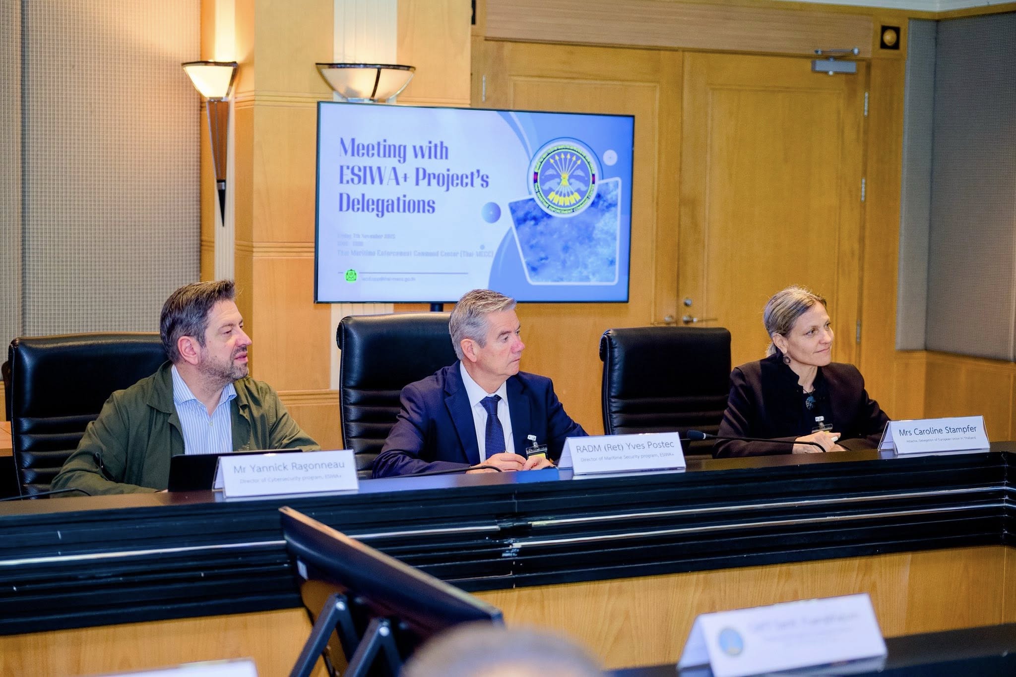 ในวันที่ 7 พฤศจิกายน 2568 เวลา 09.00 น. พล.ร.ท.ทรงฤทธิ์ ฉัตรเงิน ผู้ช่วยเลขาธิการ ศรชล. เป็นประธานการประชุมหารือร่วมกับคณะผู้แทนโครงการ Enhancing Security In and With Asia and the Indo-Pacific (ESIWA+) ณ ห้องประชุม ชั้น 29 อาคารโทรคมนาคม บางรัก กรุงเทพฯ