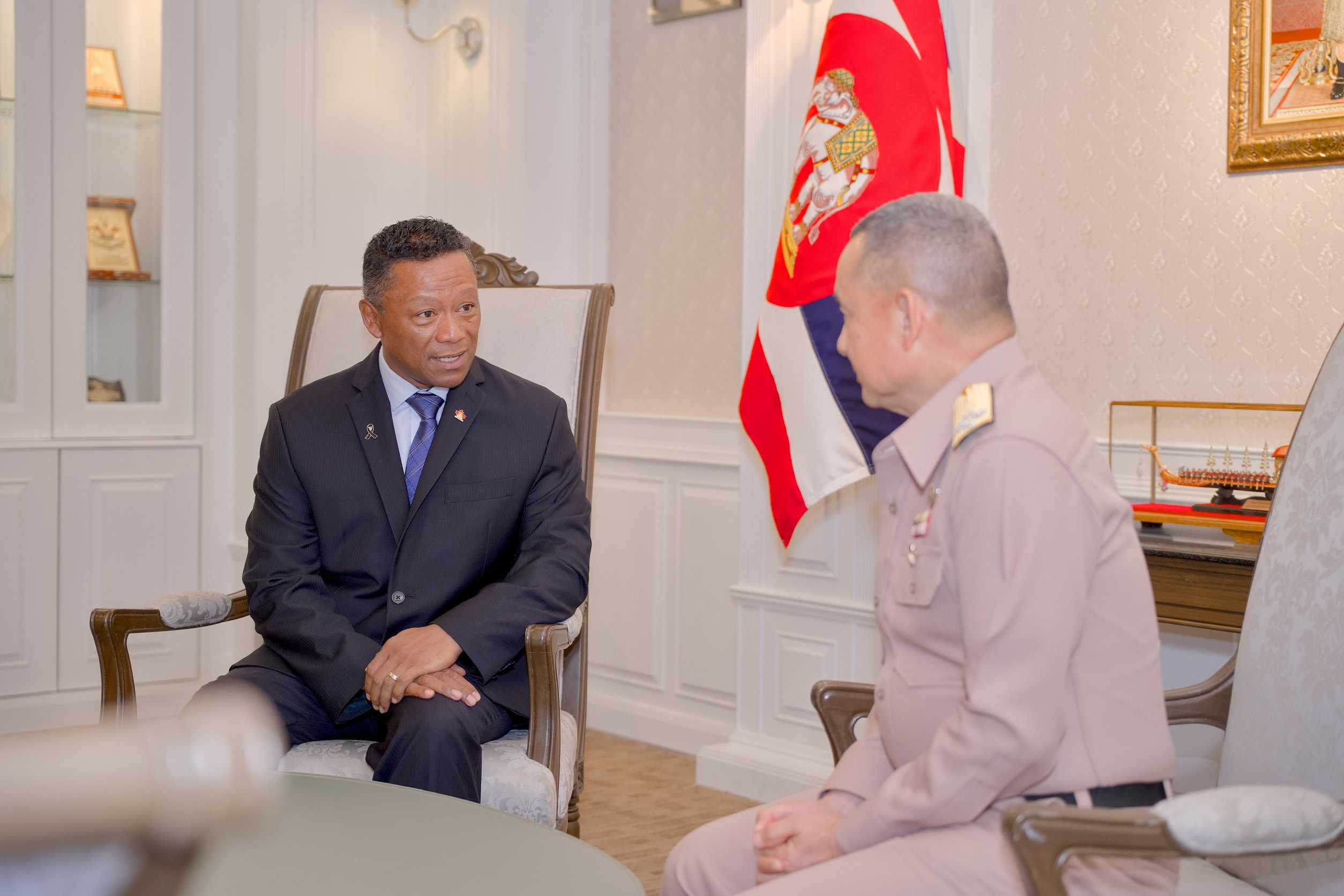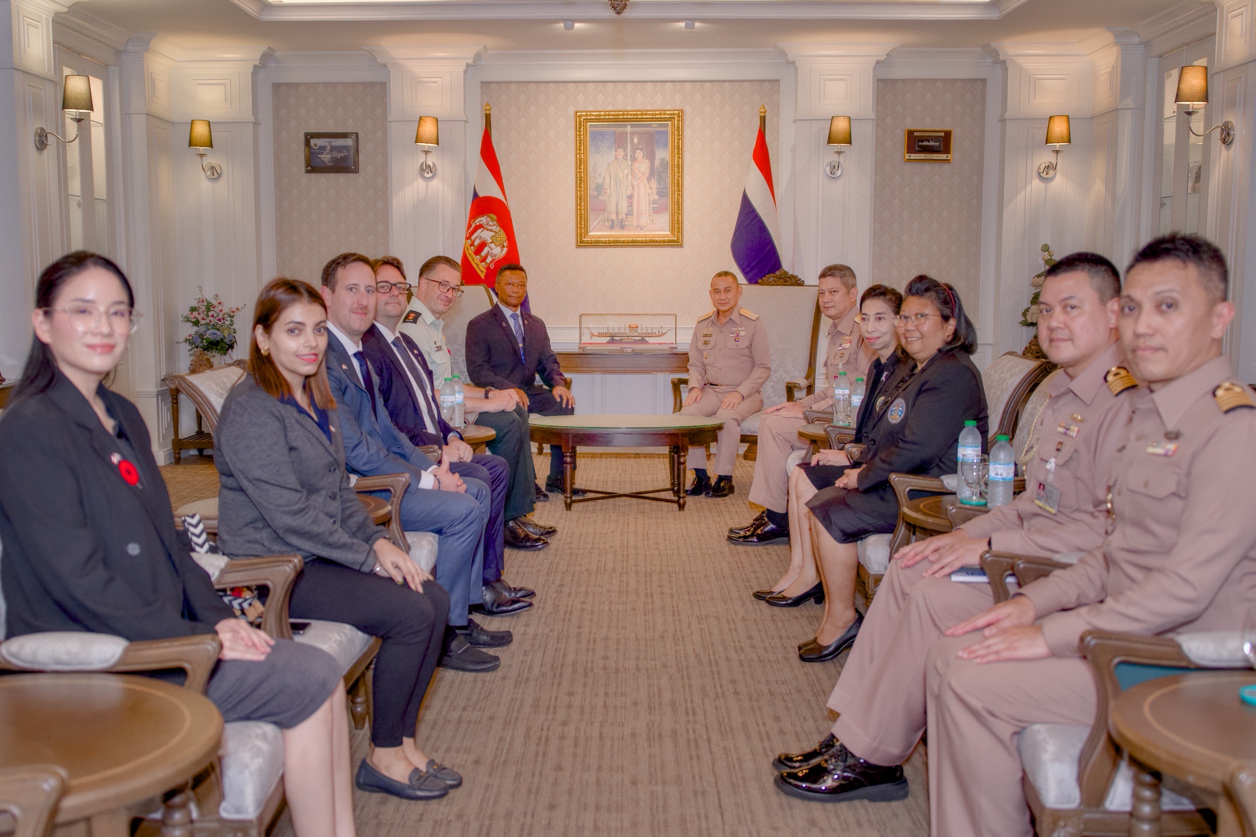 ในวันที่ 7 พฤศจิกายน 2568 เวลา 13.00 น. พล.ร.อ. ธาดาวุธ ทัดพิทักษ์กุล เลขาธิการ ศรชล. รับการเยี่ยมคำนับจาก Mr. Paul Huston, Royal Canadian Mounted Police Liaison Officer ณ ห้องรับรองชาวต่างชาติ ชั้น 2 อาคารกองบัญชาการกองทัพเรือ พื้นที่วังนันทอุทยาน กรุงเทพมหานคร
