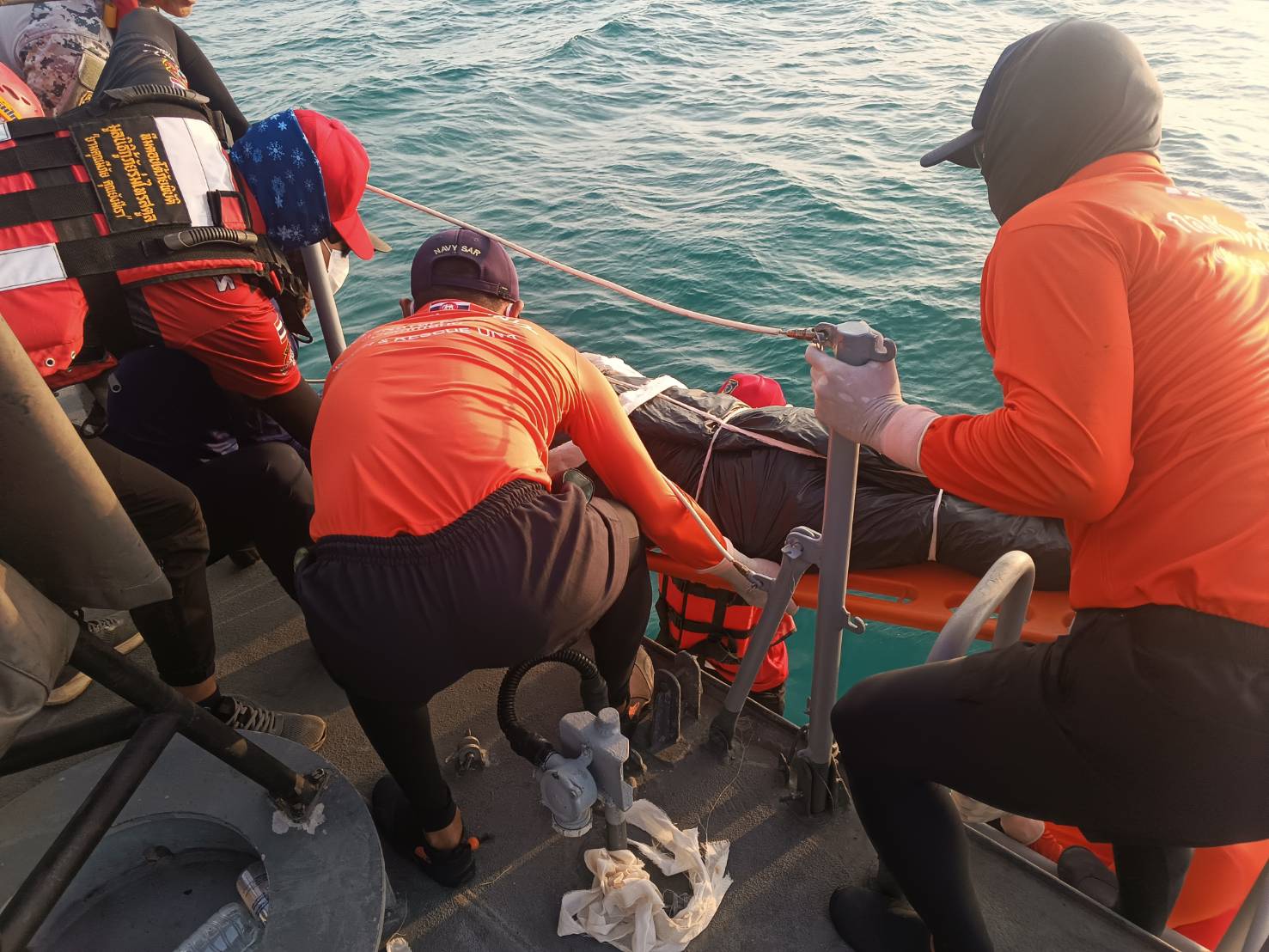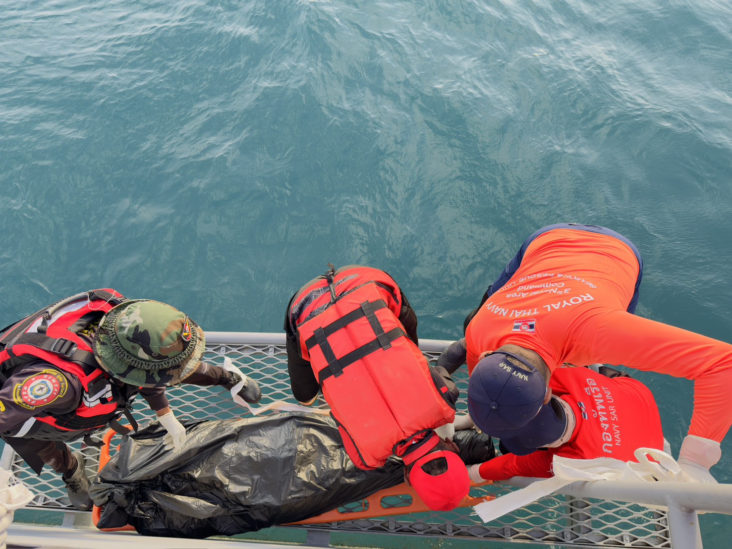 4. ตรวจพบสอบตำรวจ 2 ศพแต่ไม่สามารถเก็บกู้ได้เนื่องจาก ไหลเข้าไปในเขตน่านน้ำมาเลเซีย