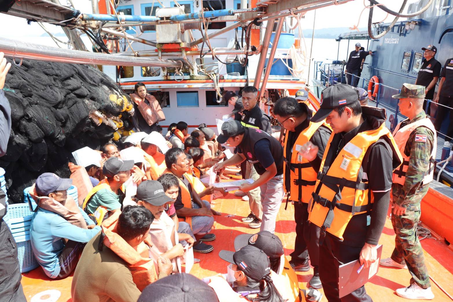 วันที่ ๑๓ พ.ย.๖๘ ศรชล.ภาค ๓ โดย ศรชล.จว.สตูล/ศคท.จว.สตูล ร่วมบูรณาการกับสำนักงานสวัสดิการและคุ้มครองแรงงานจังหวัดสตูล และหน่วยงานที่เกี่ยวข้อง ออกปฏิบัติงานเชิงรุก ตรวจคุ้มครองแรงงานในเรือประมงทะเล ครั้งที่ ๑/๒๕๖๙ เพื่อคุ้มครองแรงงานในเรือประมงทะเล ไม่ให้ตกเป็นเหยื่อการค้ามนุษย์ด้านแรงงานและได้รับสิทธิประโยชน์ตามกฎหมาย อีกทั้ง เพื่อให้การแก้ไขปัญหาการค้ามนุษย์ด้านแรงงานและการใช้แรงงานเด็กในรูปแบบที่เลวร้าย มีการบริหารจัดการอย่างเป็นระบบ มีมาตรการที่ชัดเจนและดำเนินการอย่างต่อเนื่อง ณ บริเวณปากร่องน้ำปากบารา อ.ละงู จว.สตูล โดยมี นายคณิต คงช่วย รองผู้ว่าราชการจังหวัดสตูล/หัวหน้าศูนย์บริหารจัดการแรงงานประมงจังหวัดสตูล เป็นประธานในการเปิดกิจกรรมฯ ซึ่งมีการดำเนินการตรวจเรือประมง จำนวน ๖ ลำ ตรวจคนประจำเรือทั้งหมด ๑๘๙ คน (ไทย ๑๕๑ เมียนมา ๓๗ ไม่มีสถานะทางสัญชาติ ๑) ผลจากการตรวจสอบ พบว่า นายจ้างปฏิบัติถูกต้องตามกฎหมายกำหนด เอกสารประจำเรือ หนังสือคนประจำเรือ เครื่องมือที่ขออนุญาตทำการประมง ถูกต้องครบถ้วน และไม่พบการใช้แรงงานเด็ก แรงงานบังคับ อันเป็นการกระทำเกี่ยวกับการค้ามนุษย์ การปฏิบัติเป็นไปด้วยความเรียบร้อย