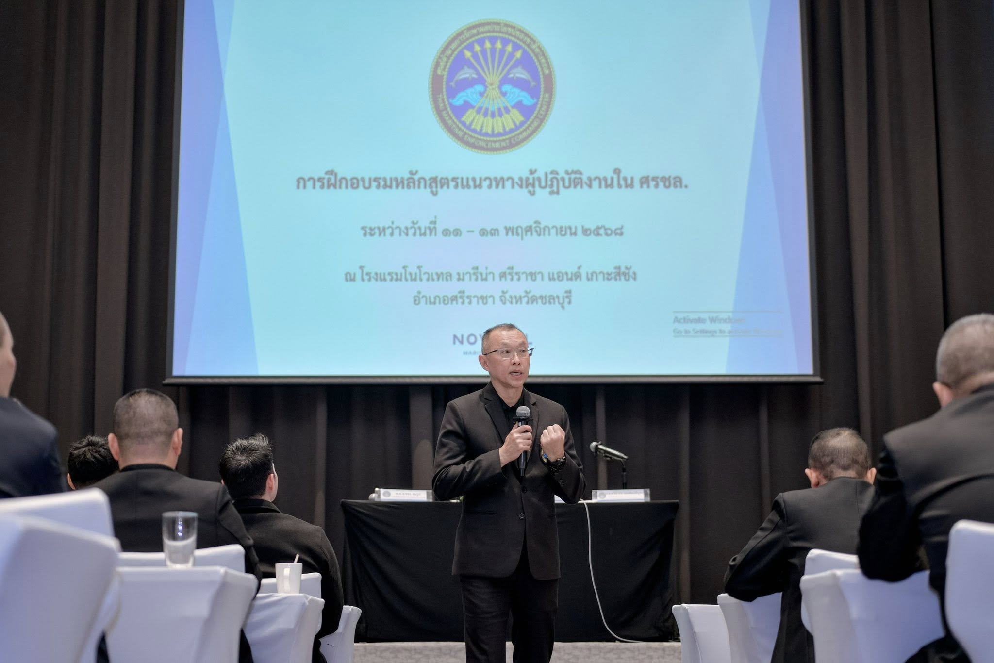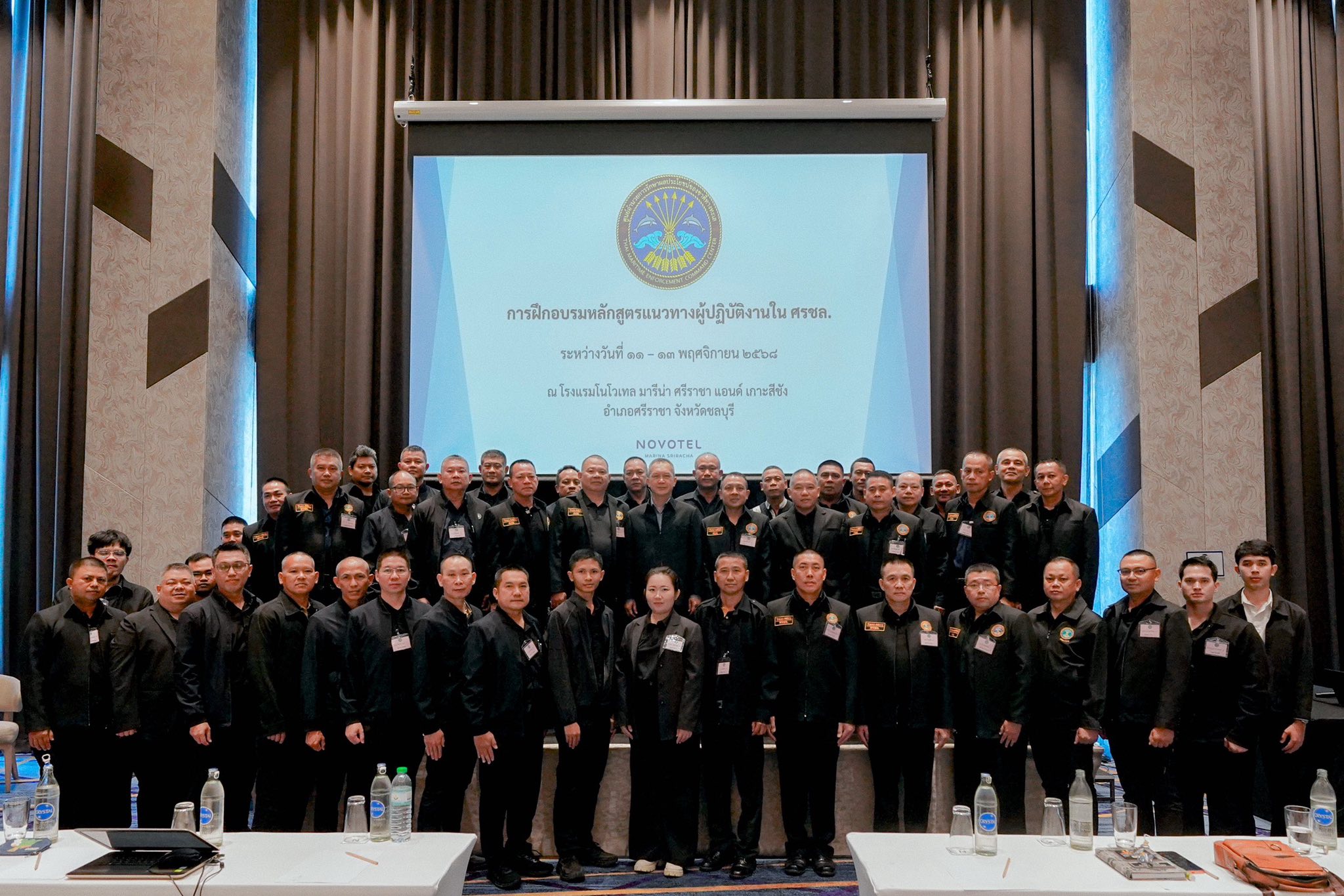 เมื่อวันที่ 11 พฤศจิกายน 2568 สำนักการฝึกและฝึกอบรม ศูนย์อำนวยการรักษาผลประโยชน์ของชาติทางทะเล (สกฝ.ศรชล.) จัดการฝึกอบรมแนวทางผู้ปฏิบัติงาน ศรชล. ประจำปีงบประมาณ 2569 โดยมี พล.ร.ต.เบญจมาพร วงศ์นครสว่าง ผอ.สำนักการฝึกและฝึกอบรม ศรชล. เป็นประธานในพิธีเปิดการฝึกอบรม และ น.อ.ธีรวีร์ อานามนารถ ผอ.กฝอ.สกฝ.ศรชล. เป็นผู้กล่าวรายงาน โดยมีผู้เข้ารับการฝึกอบรม จำนวน 52 นาย และมีกำหนดการสัมมนา ระหว่างวันที่ 11 - 13 พฤศจิกายน 2568 ณ โรงแรมโนโวเทล มารีน่า ศรีราชา อ.ศรีราชา จว.ชลบุรี