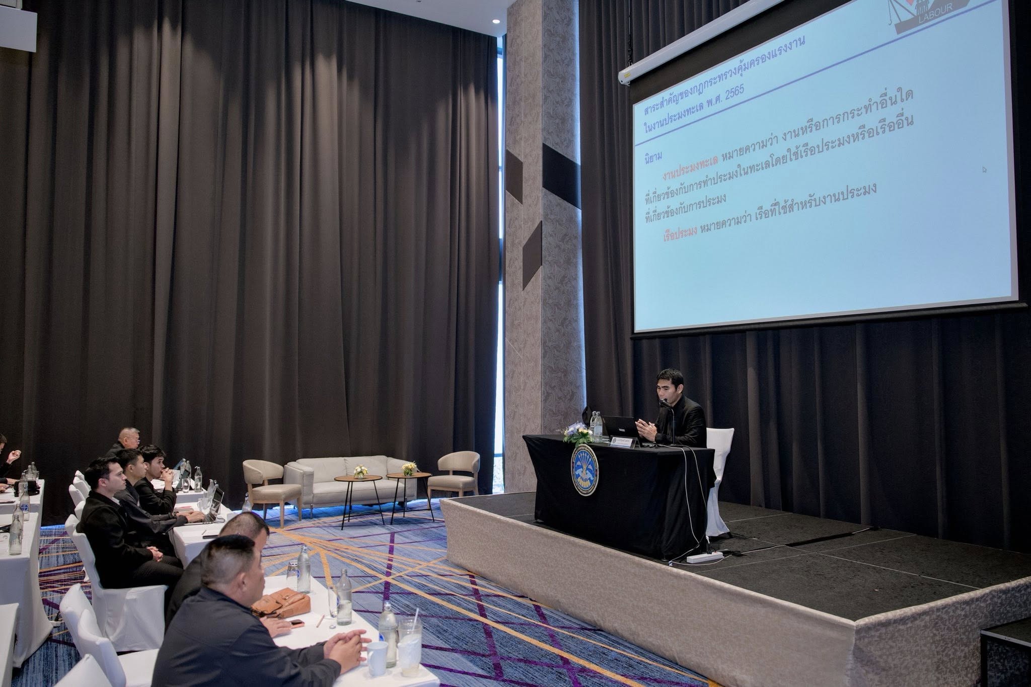 วัตถุประสงค์ เพื่อให้บุคลากรที่ได้รับการบรรจุใหม่ที่ให้มาปฏิบัติหน้าที่ใน ศรชล. มีความรู้ความเข้าใจในบทบาทหน้าที่ และแนวทางการปฏิบัติงานของ ศรชล. ตาม พ.ร.บ.การรักษาผลประโยชน์ของชาติทางทะเล พ.ศ.2562 และเสริมสร้างความสัมพันธ์และส่งเสริมให้เกิดการบูรณาการในการทำงานร่วมกันของบุคลากร ตลอดจนครอบคลุมหน่วยงานหลักใน ศรชล. เพื่อให้สามารถขับเคลื่อนงานของ ศรชล. ไปสู่เป้าหมายได้อย่างมีประสิทธิภาพ โดยได้รับความกรุณาจากวิทยากรจากกรมสวัสดิการและคุ้มครองแรงงาน และวิทยากรจากหน่วยต่าง ๆ ภายใน ศรชล. อาทิ สบก.ศรชล. ,กพบ.ศรชล. ,สนผ.ศรชล. , ศยก.ศรชล. ,สสก.ศรชล. และสำนักปฏิบัติการ 1 - 6 ศรชล. มาบรรยายในหัวข้อที่เกี่ยวข้อง ทั้งนี้ในวันที่ 13 พฤศจิกายน 2568 พล.ร.ท.พงษ์ศักดิ์ สมบุญ รองเลขาธิการ ศรชล. ให้เกียรติเข้ารับฟังการบรรยายและมอบแนวทางการปฏิบัติงานแก่กำลังพล ศรชล. ที่ได้รับการบรรจุใหม่ที่จะปฏิบัติหน้าที่ใน ศรชล. ต่อไป