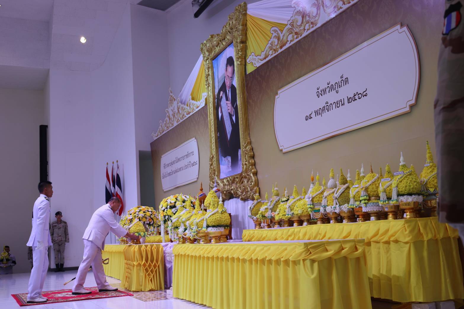 ในศุกร์ที่ ๑๔ พฤศจิกายน ๒๕๖๘ เวลา ๐๙๐๐ น.อ.กฤษณ์ เคลือบมาศ รอง ผอ.ศรชล.จว.ภก.ฯ ร่วมพิธีสักการะ วางพานพุ่มดอกไม้สดเนื่องในวันพระบิดาแห่งฝนหลวงเพื่อน้อมลำลึกในพระมหากรุณาธิคุณพระบาทสมเด็จพระบรมชนกาธิเบศร มหาภูมิพลอดุลยเดชมหาราช บรมนาถบพิตร “เนื่องในในวันพระบิดาแห่งฝนหลวง” ณ หอประชุมมหิศรภักดี ศูนย์ราชการจังหวัดภูเก็ตประกอบด้วยพิธีวางพานพุ่มดอกไม้สดโดยมีนายสมาวิษฎ์สุพรรณไพรรองผู้ว่าราชการจังหวัด ภูเก็ตเป็นประธานพร้อมทั้งหัวหน้าส่วนราชการข้าราชการทหารตำรวจองค์การบริหารส่วนท้องถิ่นเข้าร่วมกิจกรรมโดย พร้อมเพียงกัน ผลการปฏิบัติเป็นไปด้วยความเรียบร้อย