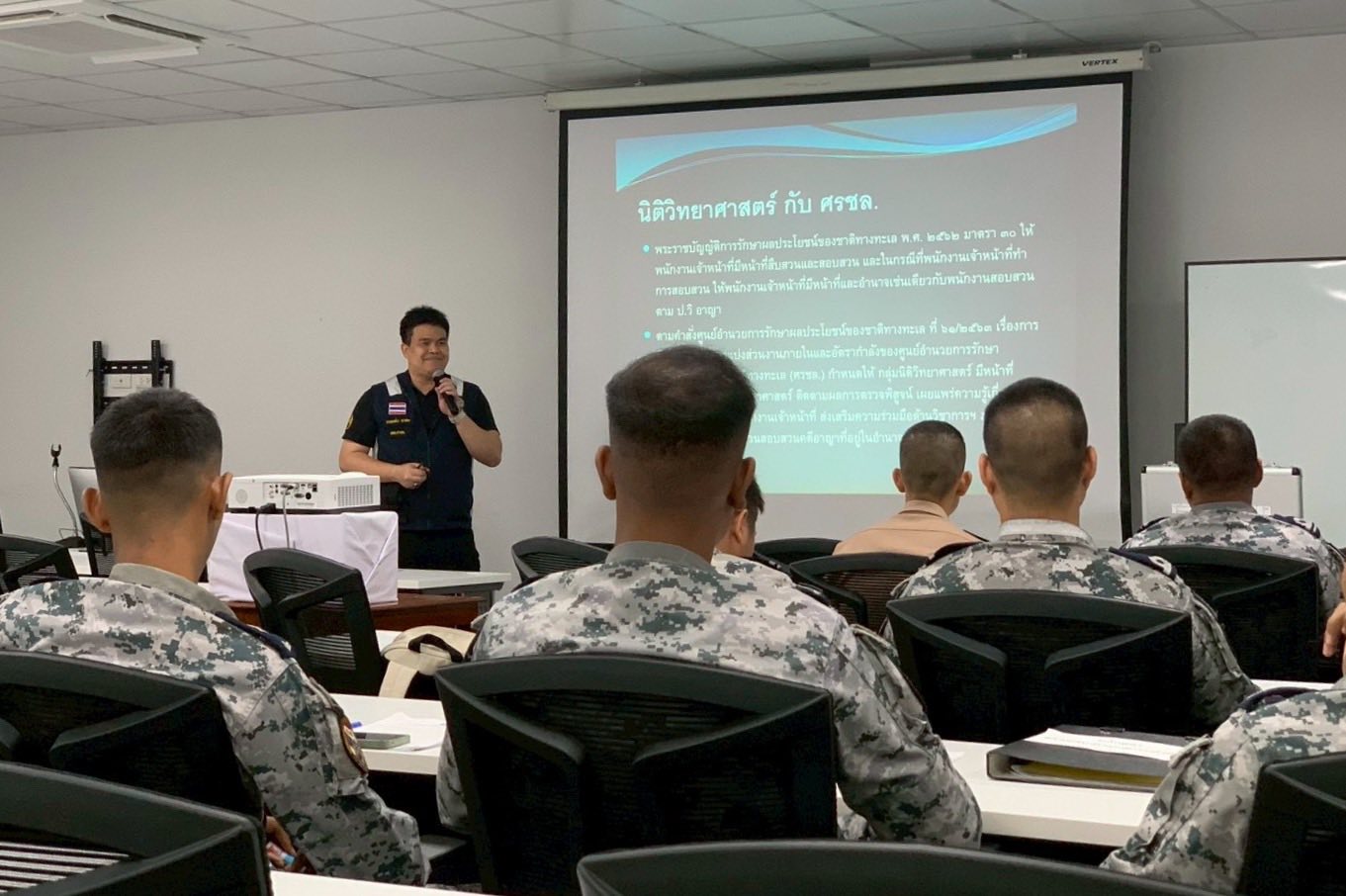 เมื่อวันที่ 17 พฤศจิกายน 2568 ศูนย์อำนวยการรักษาผลประโยชน์ของชาติทางทะเล (ศรชล.) โดย กลุ่มนิติวิทยาศาสตร์ สสก.ศรชล. และ ศรชล.ภาค 1 - 3 ได้รับเชิญเป็นวิทยากรบรรยายในหัวข้อ “การรวบรวม เก็บรักษา และส่งต่อหลักฐานนิติวิทยาศาสตร์ในคดีทางทะเล” ภายใต้หลักสูตรฝึกอบรมด้านการตรวจค้นและจับกุมผู้กระทำผิดกฎหมายในทะเล ซึ่งจัดโดยกองเรือยุทธการ กองทัพเรือ