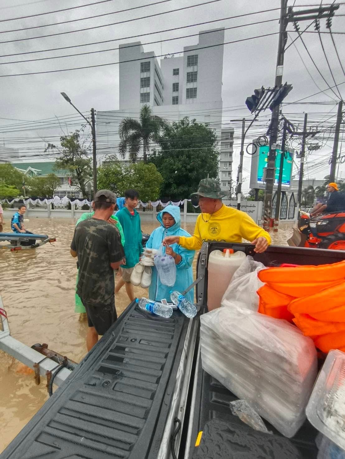โดยได้ให้การช่วยเหลือประชาชนบริเวณพื้นที่โดยรอบ รพ.หาดใหญ่ แจกอาหารกล่องพร้อมน้ำดื่ม รวมทั้งอพยพผู้ที่ประสบอุทกภัย บริเวณพื้นที่ อ.หาดใหญ่ จ.สงขลา