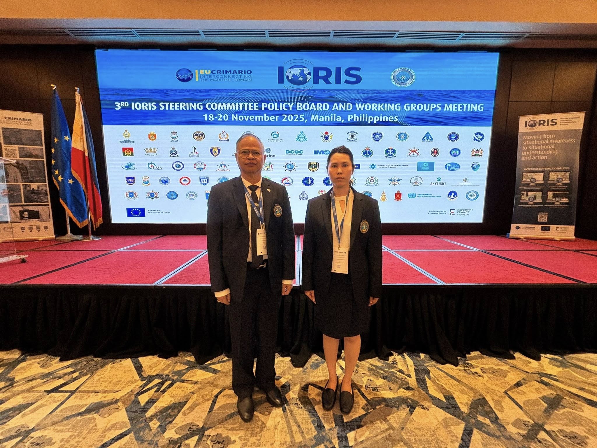 THAI-MECC Participates in the 3rd IORIS Steering Committees Meeting in Manila to Strengthen Regional Maritime Security Cooperation The Thai Maritime Enforcement Command Center (THAI-MECC), represented by Commander Chaisiri Khundam, Deputy Director of the Strategic and Operations Division, and Ms. Kanchana Sirithatsanakun, Operational Policy and Planning Analyst, attended the 3rd IORIS Steering Committees Policy Board and Working Group Meetingheld in Manila, the Philippines, from 18–20 November 2025. . The meeting aimed to enhance cooperation among member countries under the EU-funded CRIMARIO Programme, focusing on improving the operational use of the IORIS maritime situational awareness platform across policy, operational, and legal dimensions.