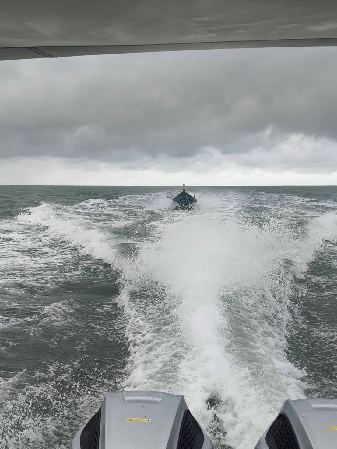 📍หลังจากพบตัวนายวิชัย ฯ แล้ว เจ้าหน้าที่ได้แจ้งว่าลูกสาวเป็นห่วงมาก จึงให้นายวิชัย ฯ ขึ้นเรือสปีดโบ๊ทพร้อมกับลากเรือประมงของนายวิชัย ฯ พากับข้อความด้วยความปลอดภัย