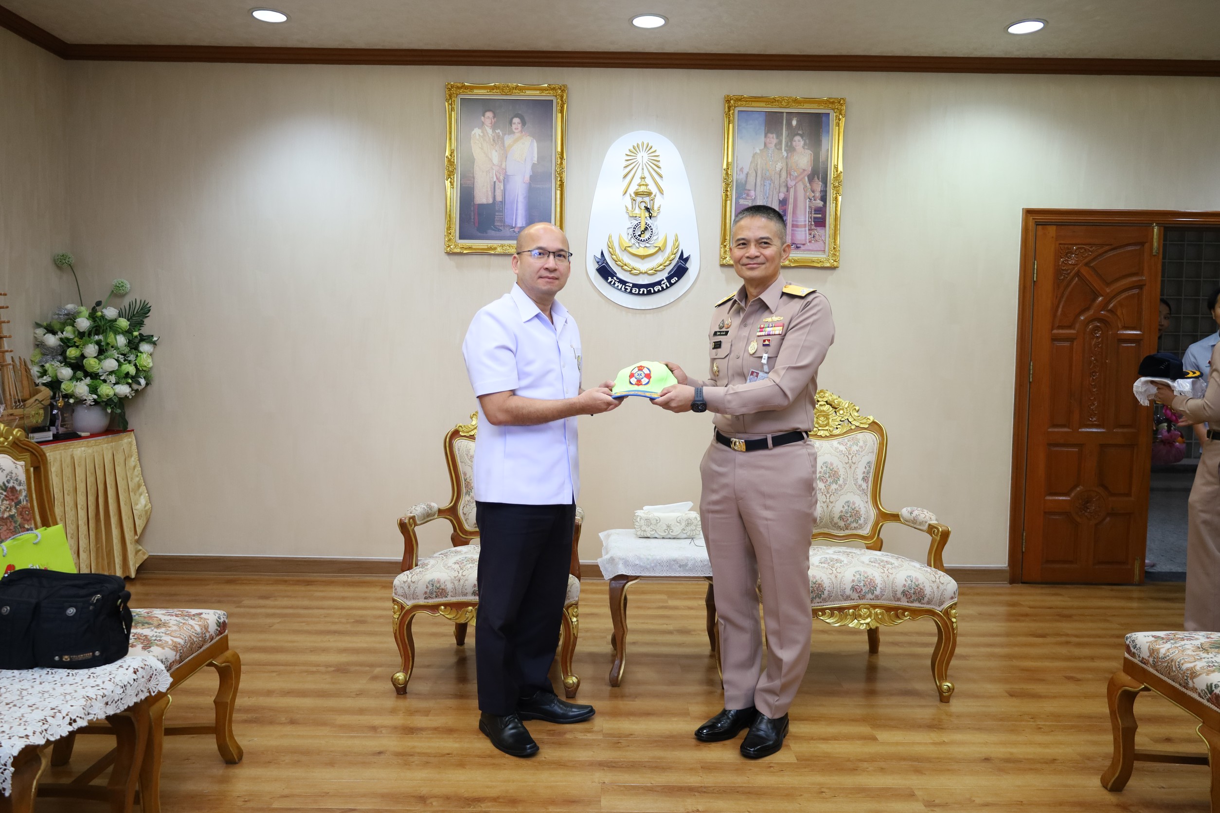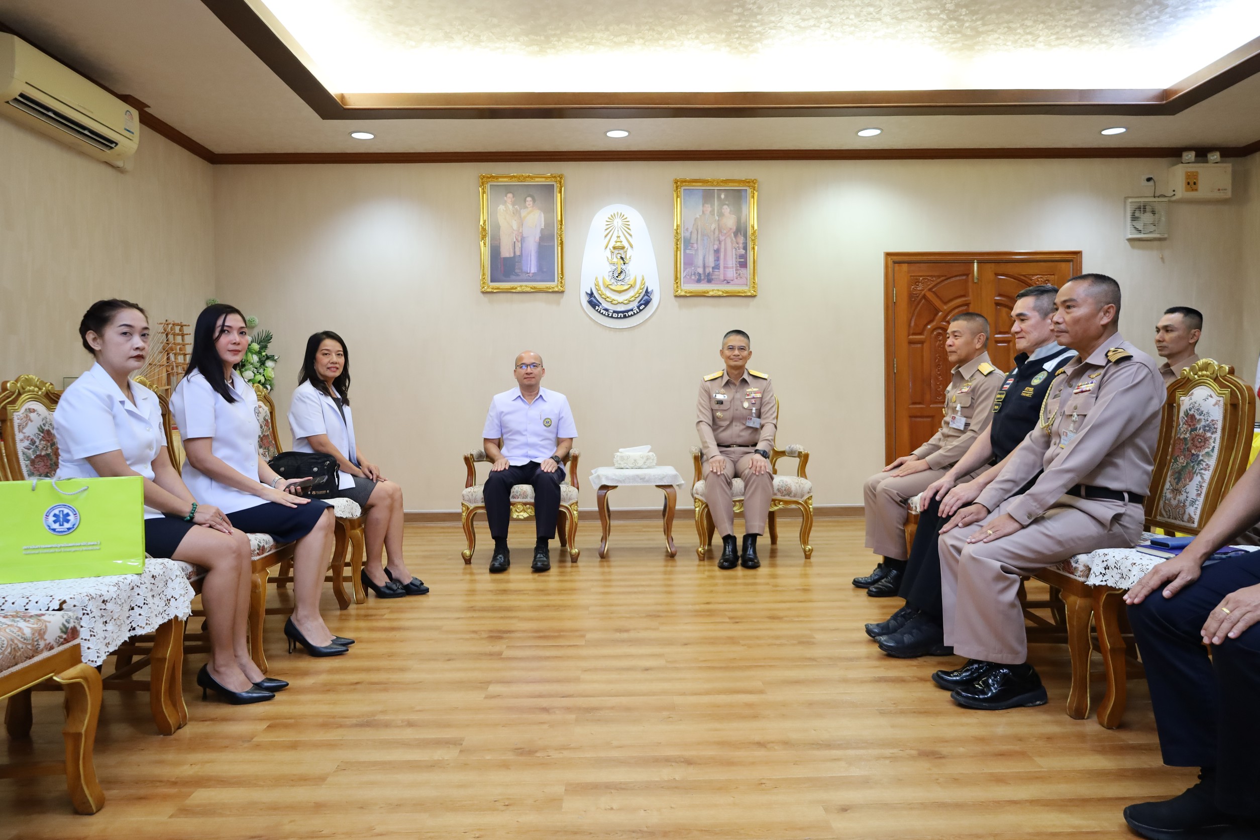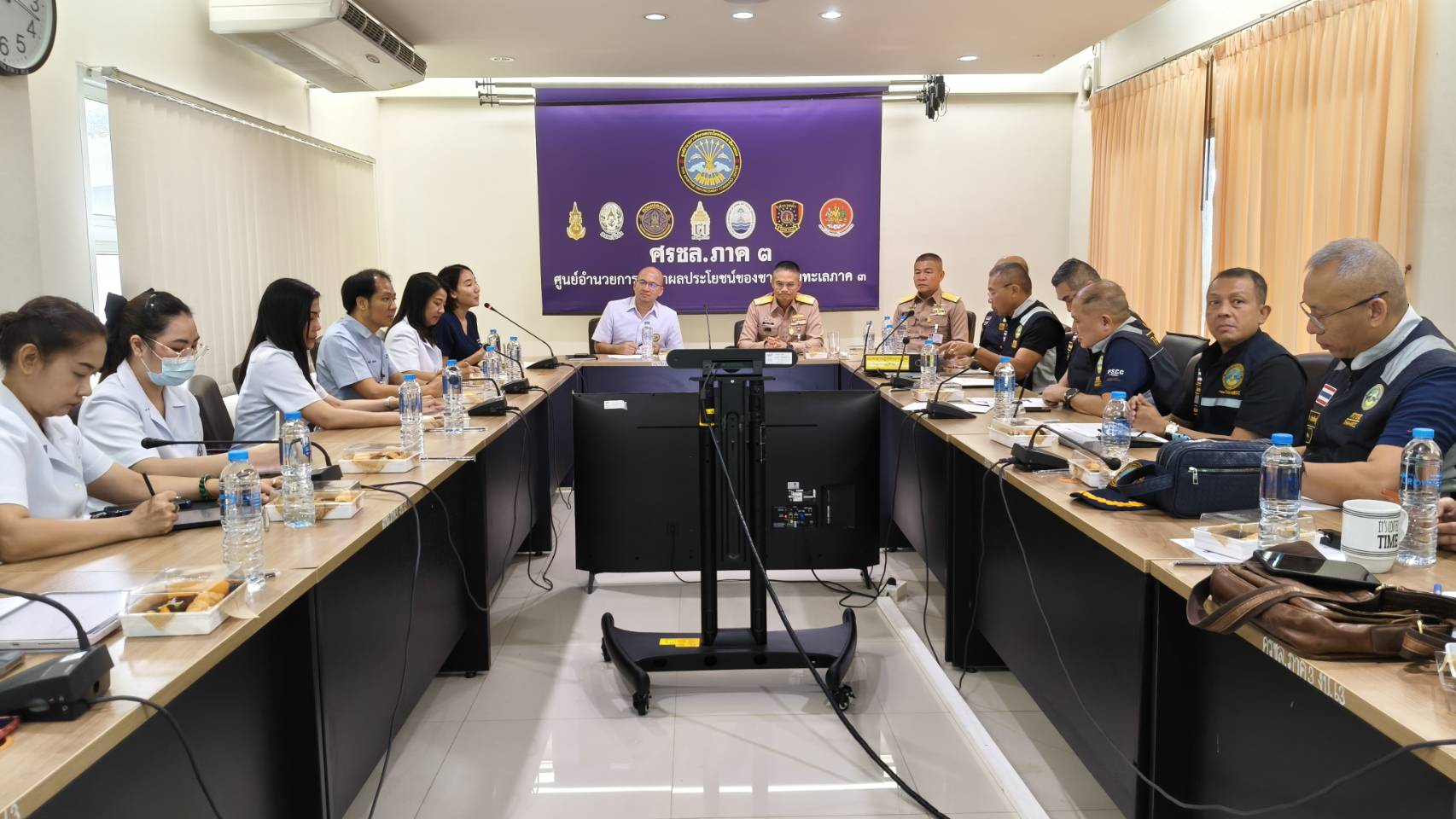 พลเรือโท วีรุดม ม่วงจีน ผู้บัญชาการทัพเรือภาคที่ ๓ / ผู้อำนวยการศูนย์อำนวยการรักษาผลประโยชน์ของชาติทางทะเล ภาค ๓ (ผอ.ศรชล.ภาค ๓) ให้การต้อนรับคณะผู้บริหารและบุคลากรจาก สถาบันการแพทย์ฉุกเฉินแห่งชาติ (สพฉ.) นำโดย