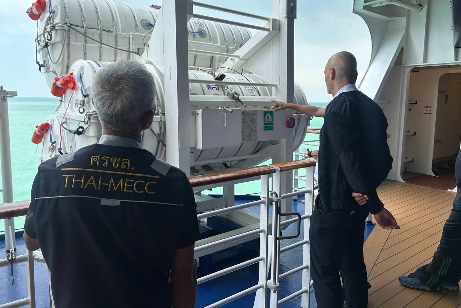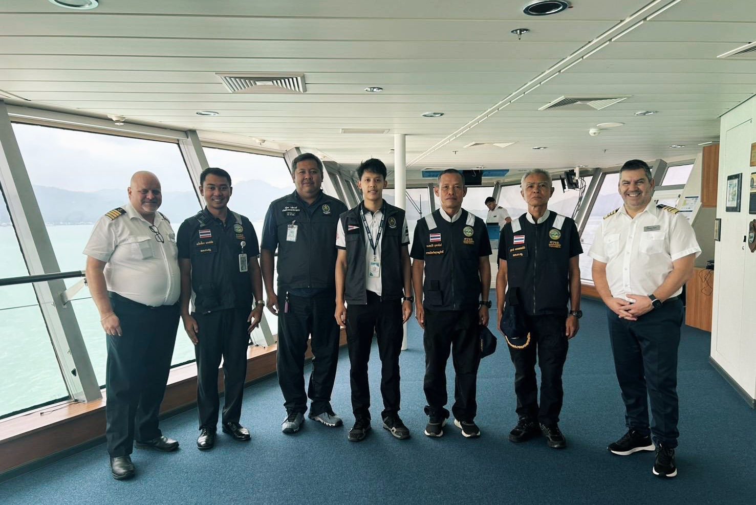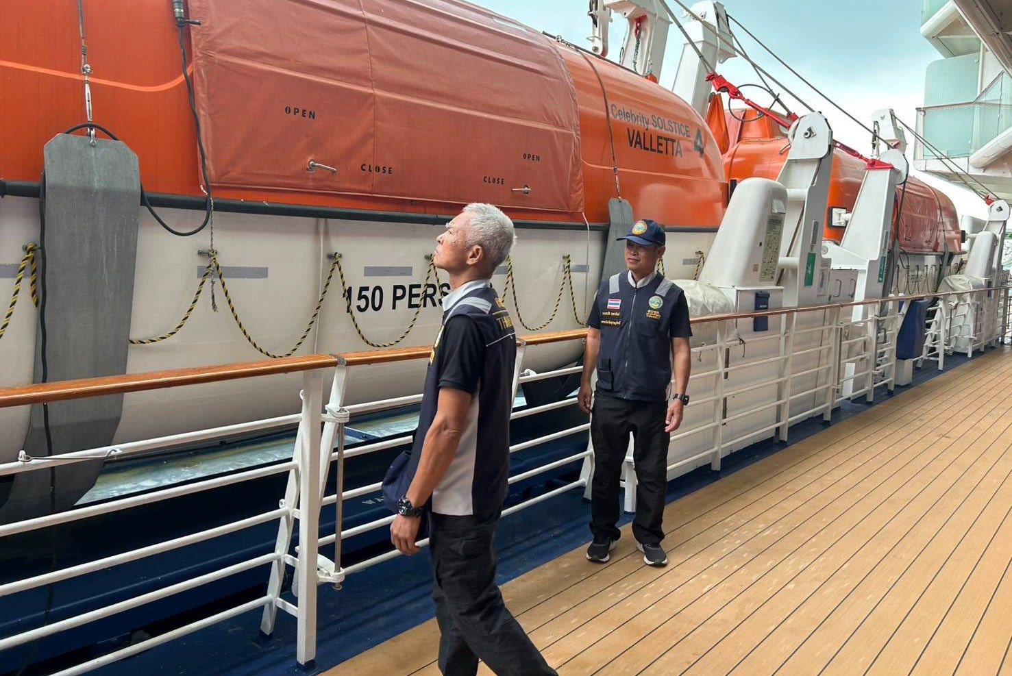 ในวันที่ 26 พฤศจิกายน 2568 ศรชล.ภาค 2 โดย ศรชล.จว.สุราษฎร์ธานี และศคท.จว.สุราษฎร์ธานี/น.อ.ณัฐพล สินพูลผล รอง ผอ.ศรชล.จว.สุราษฎร์ธานี และ น.อ.ธวัช สุวรรณรัตน์ หน.ศูนย์ควบคุมจังหวัด ศคท.จว.สุราษฎร์ธานี พร้อมด้วย จนท.ศรชล.จว.สุราษฎร์ธานี จนท.ศคท.จว.สุราษฎร์ธานี บรูณาการกับหน่วยงานในพื้นที่ประกอบด้วย สนง.เจ้าภูมิภาคสาขาเกาะสมุย ด่านควบคุมโรคติดต่อระหว่างประเทศเกาะสมุย ตรวจคนเข้าเมืองเกาะสมุย และด่านศุลกากรเกาะสมุย อำนวยความสะดวกและทำการตรวจระบบความปลอดภัย อุปกรณ์ความปลอดภัยประจำเรือ ตำบลที่จอดเรือ รวมถึงการคัดกรอง-การขนถ่ายสินค้าและผู้โดยสาร ให้กับเรือสำราญชื่อ CELEBRITY SOLSTICE เรือสัญชาติ MALTA ขนาด 121,878 ตันกรอส ซึ่งนำผู้โดยสารและนักท่องเที่ยวชาวต่างชาติจำนวน 2,052 คน ลูกเรือ จำนวน 1,230 คน เดินทางมาจากท่าเทียบเรือแหลมฉบัง จังหวัดชลบุรี เข้ามายังเมืองท่าเกาะสมุย จังหวัดสุราษฎร์ธานี เพื่อให้นักเที่ยวได้พักผ่อนและท่องเที่ยวขึ้นฝั่งเกาะสมุย ในวันที่ 26 พฤศจิกายน 2568 เวลา 06.00 น. และมีกำหนดเดินทางออกจากเมืองท่าเกาะสมุยไปยังประเทศสาธารณรัฐสิงคโปร์ วันที่ 26 พฤศจิกายน 2568 เวลา 17.00 น.เป็นเมืองท่าต่อไป