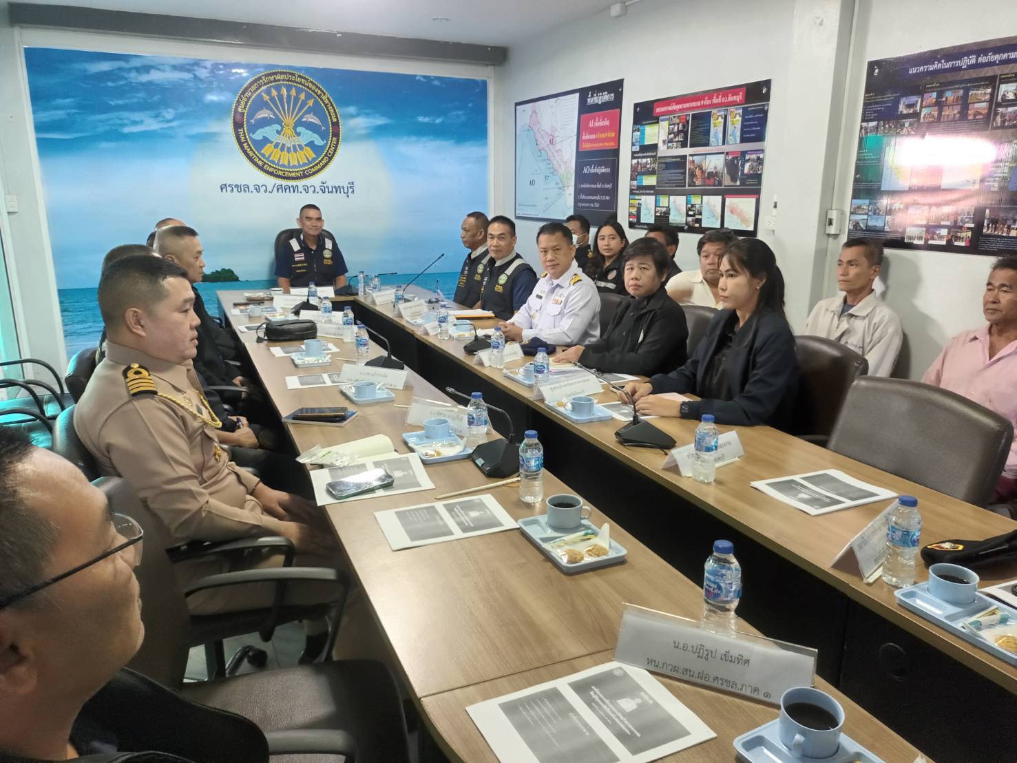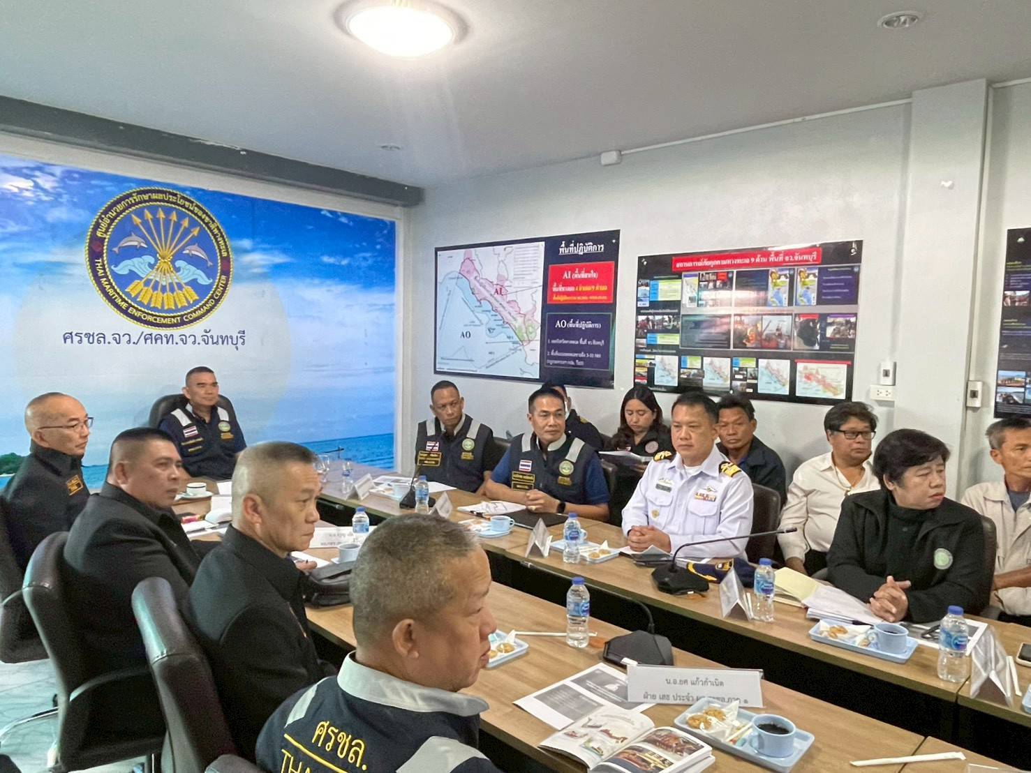 ในวันที่ 28 พฤศจิกายน 2568 พล.ร.ท.เฉลิมชัย สวนแก้ว ผอ.ศรชล.ภาค 1 และคณะ เดินทางมาตรวจเยี่ยมสำนักงาน ศรชล.จว.จบ./ศคท.จว.จบ. โดยมี น.อ.สุรนาท เจียมจิตร รอง ผอ.ศรชล.จว.จบ. ว่าที่ น.อ.ธีระพล พงษ์สระพัง หน.ศคท.จว.จบ. พร้อมด้วยกำลังพล ศรชล.จว./ศคท.จว.จบ. และหัวหน้าส่วนราชการใน ศรชล.จังหวัด ให้การต้อนรับ ทั้งนี้ได้มีการรายงานสรุปผลการปฏิบัติงานที่ผ่านมาในปีงบประมาณ 2568 ผู้ประกอบการด้านการประมงพื้นที่จังหวัดจันทบุรี เข้าพบ ผอ.ศรชล.ภาค 1 และแจ้งปัญหา อุปสรรค ขัดข้อง เกี่ยวกับการทำการประมง ให้ทราบถึงปัญหาด้านต่าง ๆ การนี้ เวลา 1100 ผอ.ศรชล.ภาค 1 พร้อมคณะ และหัวหน้าส่วนราชการใน ศรชล.จังหวัดจันทบุรี เข้าพบปะหารือข้อราชการกับ นายมนต์สิทธิ์ ไพศาลธนวัฒน์ ผอ.ศรชล.จว.จบ./ผวจ.จันทบุรี