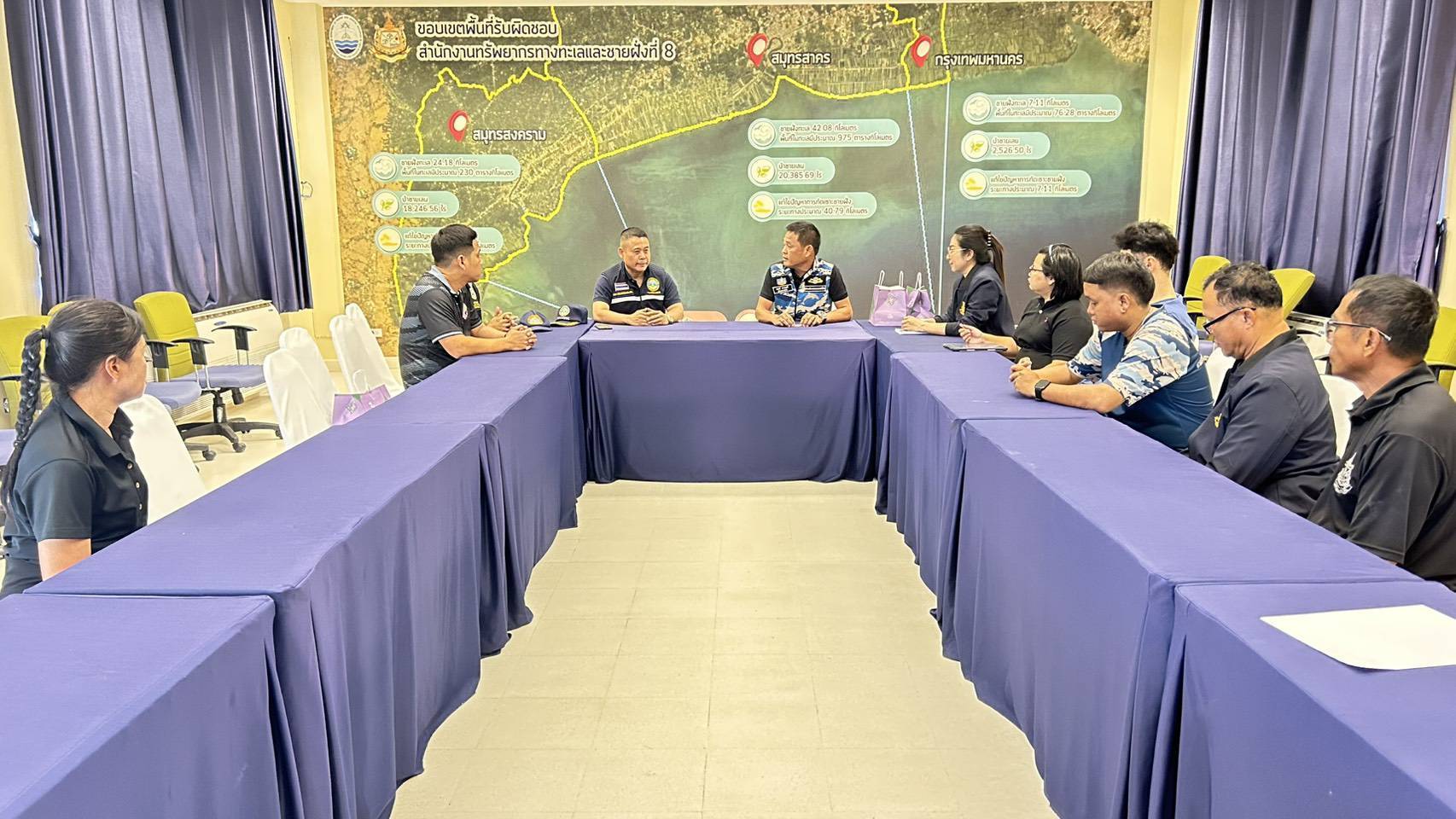 ในวันที่ 3 ธันวาคม 2568 เวลา 1000 น. น.อ.ณัฏฐกฤติ บุญปาลิต รอง ผอ.ศรชล.จว.สมุทรสาคร ลงพื้นที่ปฏิบัติงานเพื่อเสริมสร้างความสัมพันธ์ในระดับหัวหน้าส่วนราชการในจังหวัดฯ ตามนโยบาย ผอ.ศรชล.ภาค 1 โดยได้เข้าเยี่ยมเยียนและหารือข้อราชการร่วมกับ นายมนตรี หามนตรี ผู้อำนวยการสำนักงานทรัพยากรทางทะเลและชายฝั่งที่ 8 ณ สำนักงานทรัพยากรทางทะเลและชายฝั่งที่ 8 ต.โคกคาม อ.เมืองฯ จังหวัดสมุทรสาคร