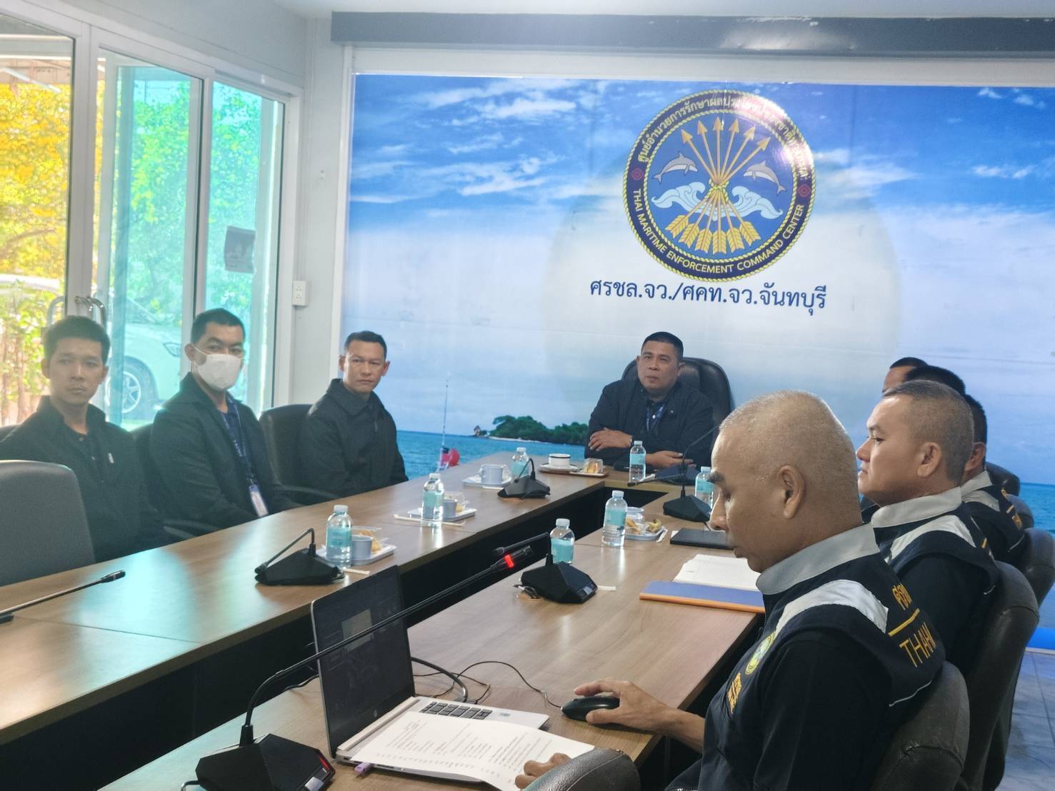 เวลา 0900 -1200 ฟังบรรยายสรุปผลการปฏิบัติงานด้านงานข่าวที่ผ่านมาของ ศรชล.จว.จบ./ศคท.จว.จบ. พร้อมทั้งสอบถามปัญหาอุปสรรคข้อขัดข้อง รับฟังแลกเปลี่ยนประสบการณ์ด้านการข่าว เพื่อเป็นข้อมูลในการประสานการปฏิบัติต่อไป เวลา1300-1400 ฟังบรรยายสรุปผลการปฏิบัติงานของศูนย์การแจ้งเข้า-ออกเรือประมงจังหวัดจันทบุรี (PIPO จันทบุรี) สอบถามปัญหาอุปสรรคข้อขัดข้อง ปัญหาการตรวจแรงงาน การค้ามนุษย์ และแนวโน้มปัญหาผลกระทบการขาดแคลนแรงงาน ในสถานการณ์ปัจจุบันที่มีการสู้รบระหว่างไทย-กัมพูชา ตลอดทั้งปัญหาการทำประมงผิดกฎหมายและยาเสพติดในพื้นที่ พร้อมกันนี้ได้แนะนำและรับฟังปัญหา ประสานการปฏิบัติหาแนวทางป้องกันแก้ไขปัญหาต่อไป