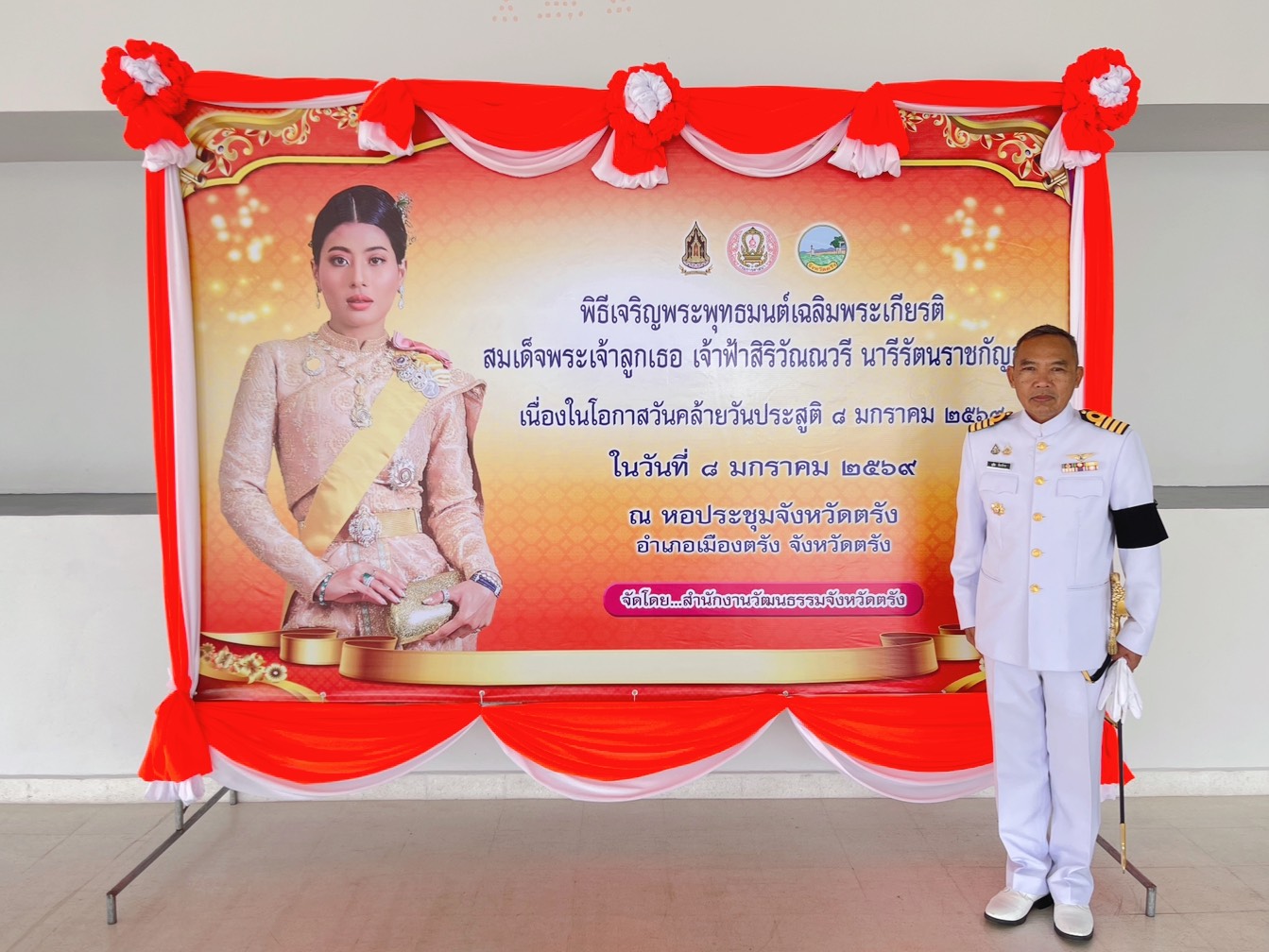 ในวันพฤหัสบดีที่ ๘ ม.ค.๖๙ เวลา ๐๙๐๐ ศรชล.ภาค ๓ โดย น.อ.ดุสิต จันทร์ราช รอง ผอ.ศรชล.จว.ตรัง เข้าร่วมพิธีเจริญพระพุทธมนต์เฉลิมพระเกียรติ เนื่องในโอกาสวันคล้ายวันประสูติ สมเด็จพระเจ้าลูกเธอ เจ้าฟ้าสิริวัณณวรี นารีรัตนราชกัญญา เนื่องในโอกาสวันคล้ายวันประสูติ ๘ มกราคม ๒๕๖๙ เพื่อเป็นการแสดงออกถึงความจงรักภักดีต่อสถาบันพระมหากษัตริย์ และน้อมรำลึกในพระมหากรุณาธิคุณ ซึ่งมีหัวหน้าส่วนราชการ ศาล ทหาร ตำรวจ ภาครัฐ ภาคเอกชน และประชาชนในจังหวัดตรัง เข้าร่วมกิจกรรมดังกล่าว ณ หอประชุมจังหวัดตรัง อำเภอเมืองตรัง จังหวัดตรัง โดยมี นายทรงกลด สว่างวงศ์ ผู้ว่าราชการจังหวัดตรัง เป็นประธานในพิธีฯ ผลการปฏิบัติเป็นไปด้วยความเรียบร้อย