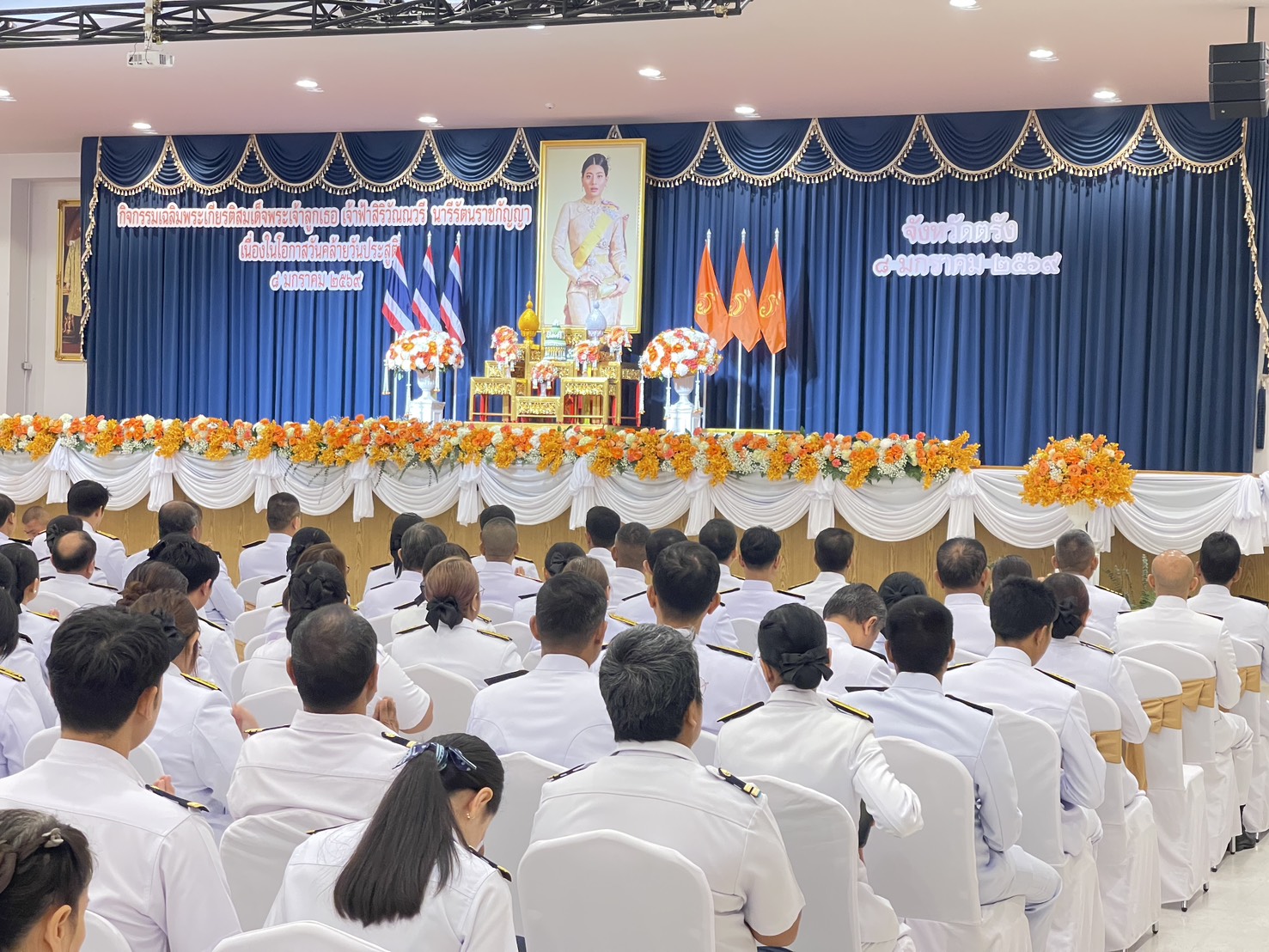 ในวันพฤหัสบดีที่ 8 มกราคม 2569 เวลา 09.00 น. ศรชล.ภาค 3 โดย น.อ.ดุสิต จันทร์ราช รอง ผอ.ศรชล.จว.ตรัง เข้าร่วมพิธีเจริญพระพุทธมนต์เฉลิมพระเกียรติ สมเด็จพระเจ้าลูกเธอ เจ้าฟ้าสิริวัณณวรี นารีรัตนราชกัญญา เนื่องในโอกาสวันคล้ายวันประสูติ 8 มกราคม 2569 ณ หอประชุมจังหวัดตรัง อำเภอเมืองตรัง จังหวัดตรัง โดยมี นายทรงกลด สว่างวงศ์ ผู้ว่าราชการจังหวัดตรัง เป็นประธานในพิธี
