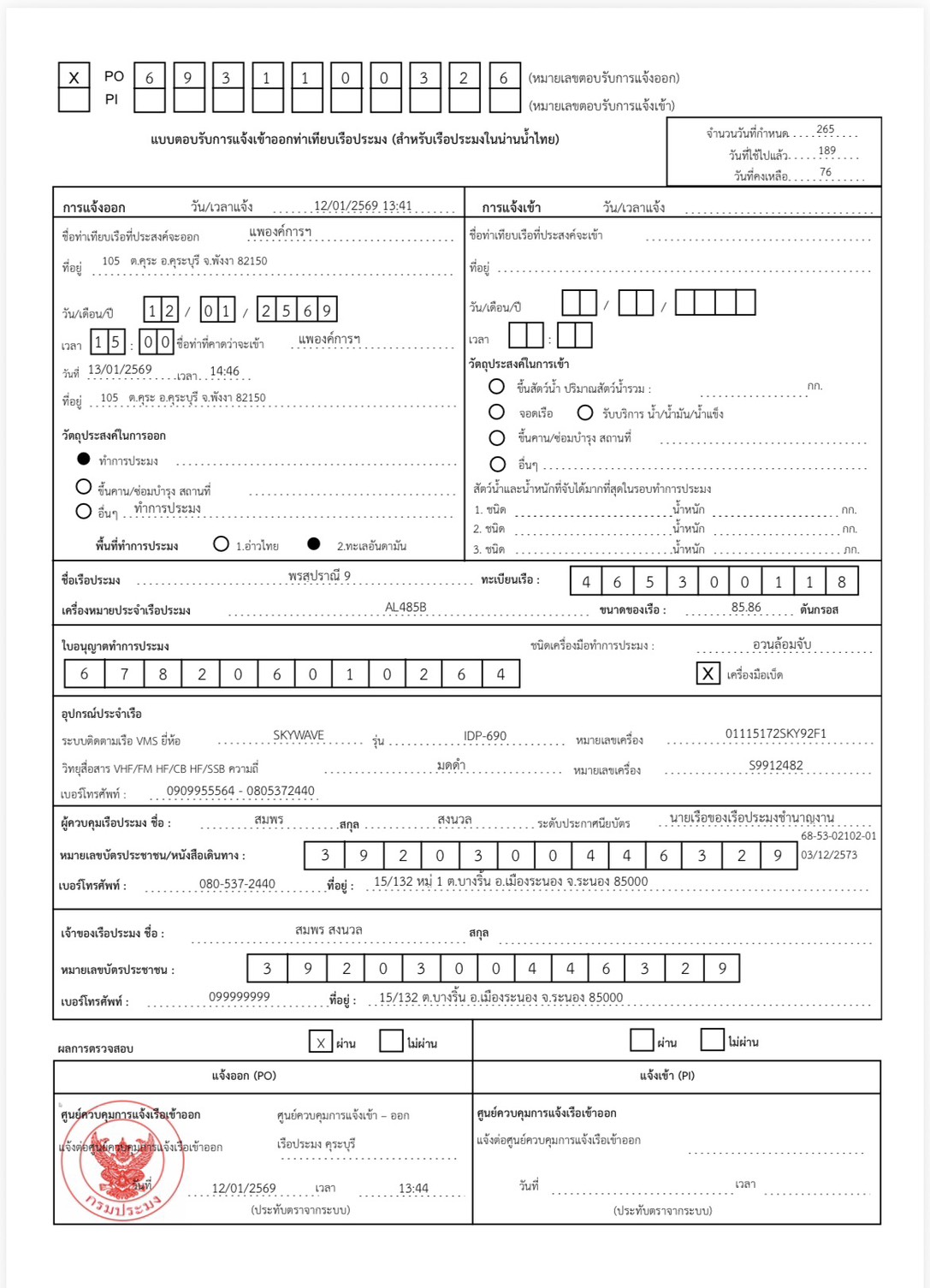 ๑. ในวันที่ ๑๓ ม.ค.๖๙ เวลา ๑๐๐๐ ศคท.จว.พง.ฯ ได้รับเเจ้งจากศูนย์ควบคุมการแจ้งเรือเข้าออกคุระบุรี