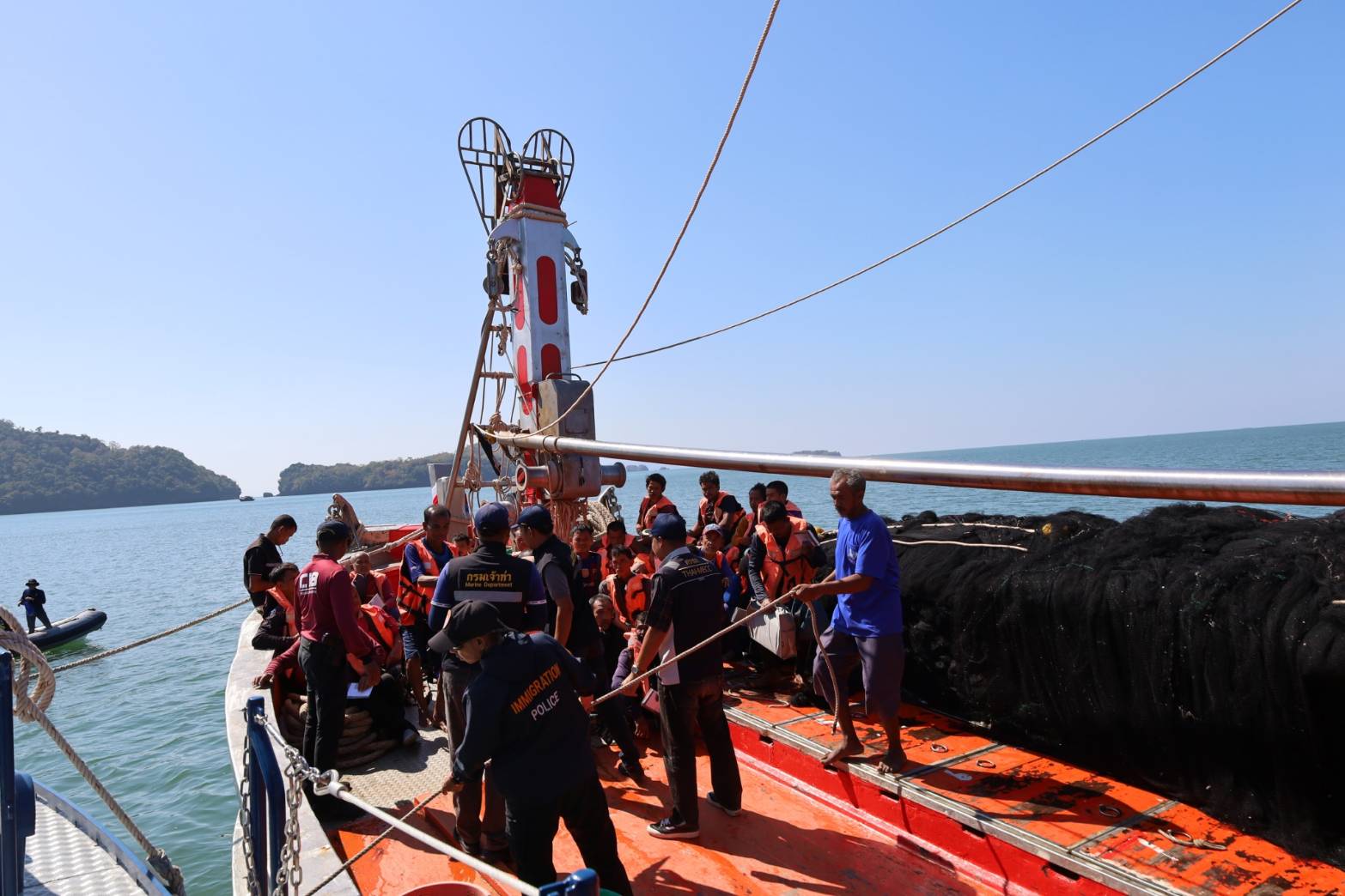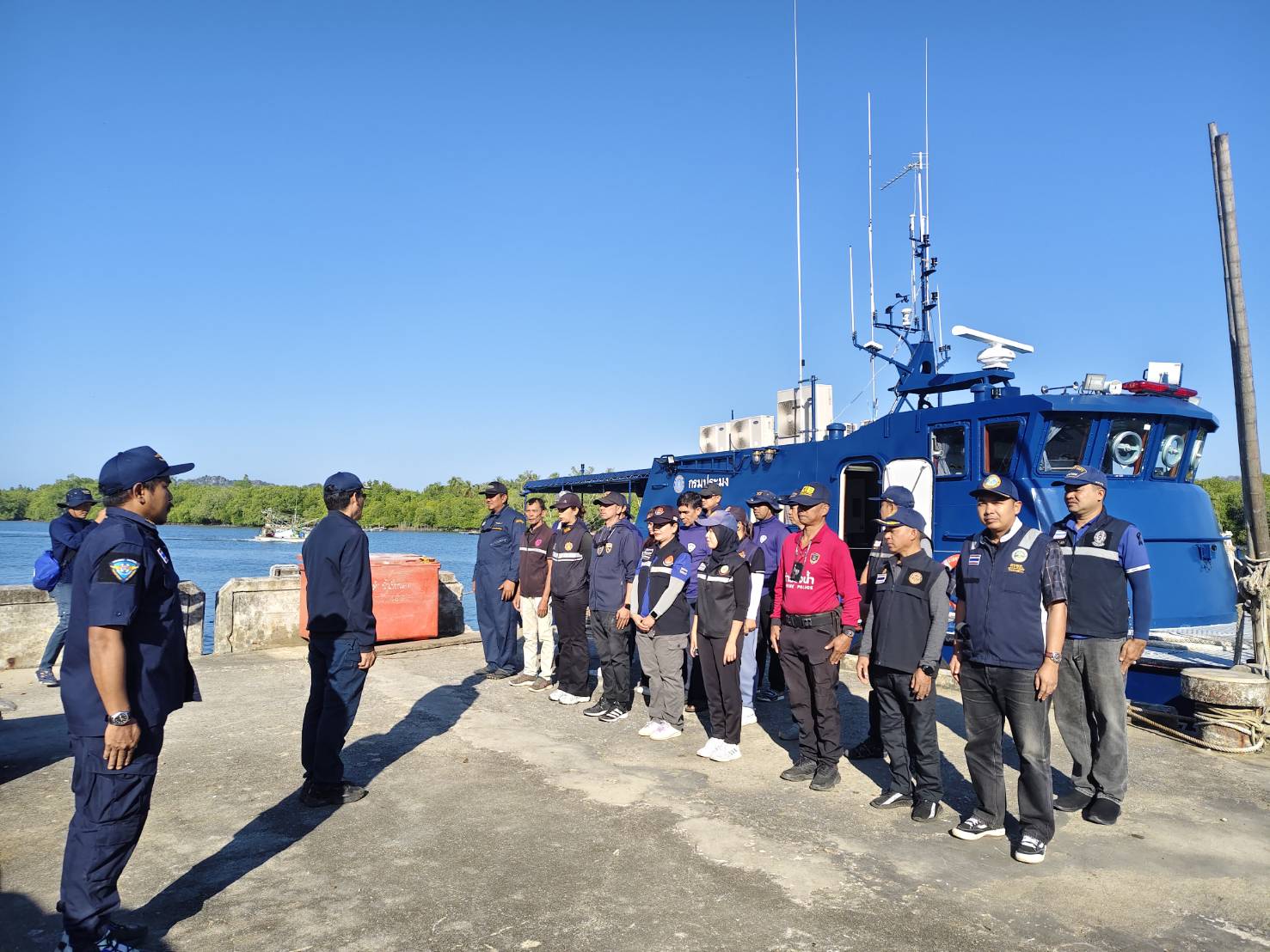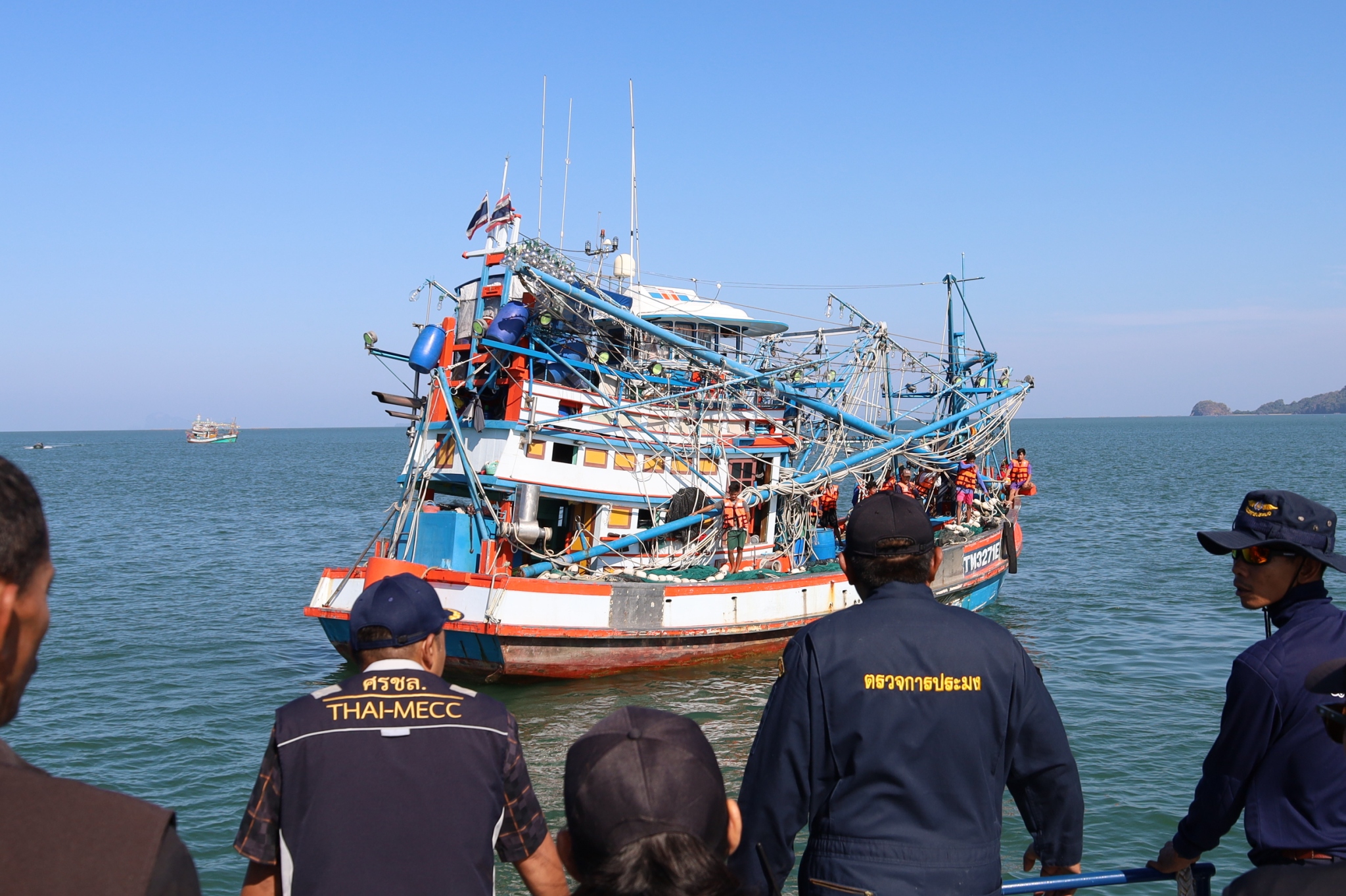 วันที่ ๑๓ ม.ค.๖๙ ศรชล.ภาค ๓ โดย ศรชล.จว.สตูล/ศคท.จว.สตูล ร่วมบูรณาการกับหน่วยป้องกันและปราบปรามประมงทะเลเกาะหลีเป๊ะ (สตูล) และหน่วยงานที่เกี่ยวข้อง ออกปฏิบัติงานเชิงรุก ตรวจบูรณาการแรงงาน ตามแผนงานยุทธศาสตร์ป้องกันและแก้ไขปัญหาที่มีผลกระทบต่อความมั่นคง โดยใช้เรือตรวจประมงทะเล ๖๑๔ ในการออกปฏิบัติงาน ณ บริเวณปากร่องน้ำปากบารา อ.ละงู จว.สตูล โดยมี นายตะวัน คงสี ผอ.ศูนย์บริหารจัดการด่านตรวจประมงเขต ๙ (สตูล) เป็นประธานในการเปิดฯ ซึ่งมีการดำเนินการตรวจเรือประมง จำนวน ๗ ลำ ตรวจคนประจำเรือทั้งหมด ๑๘๑ คน (ไทย ๑๖๑ เมียนมาร์ ๒๐) การปฏิบัติเป็นไปด้วยความเรียบร้อย