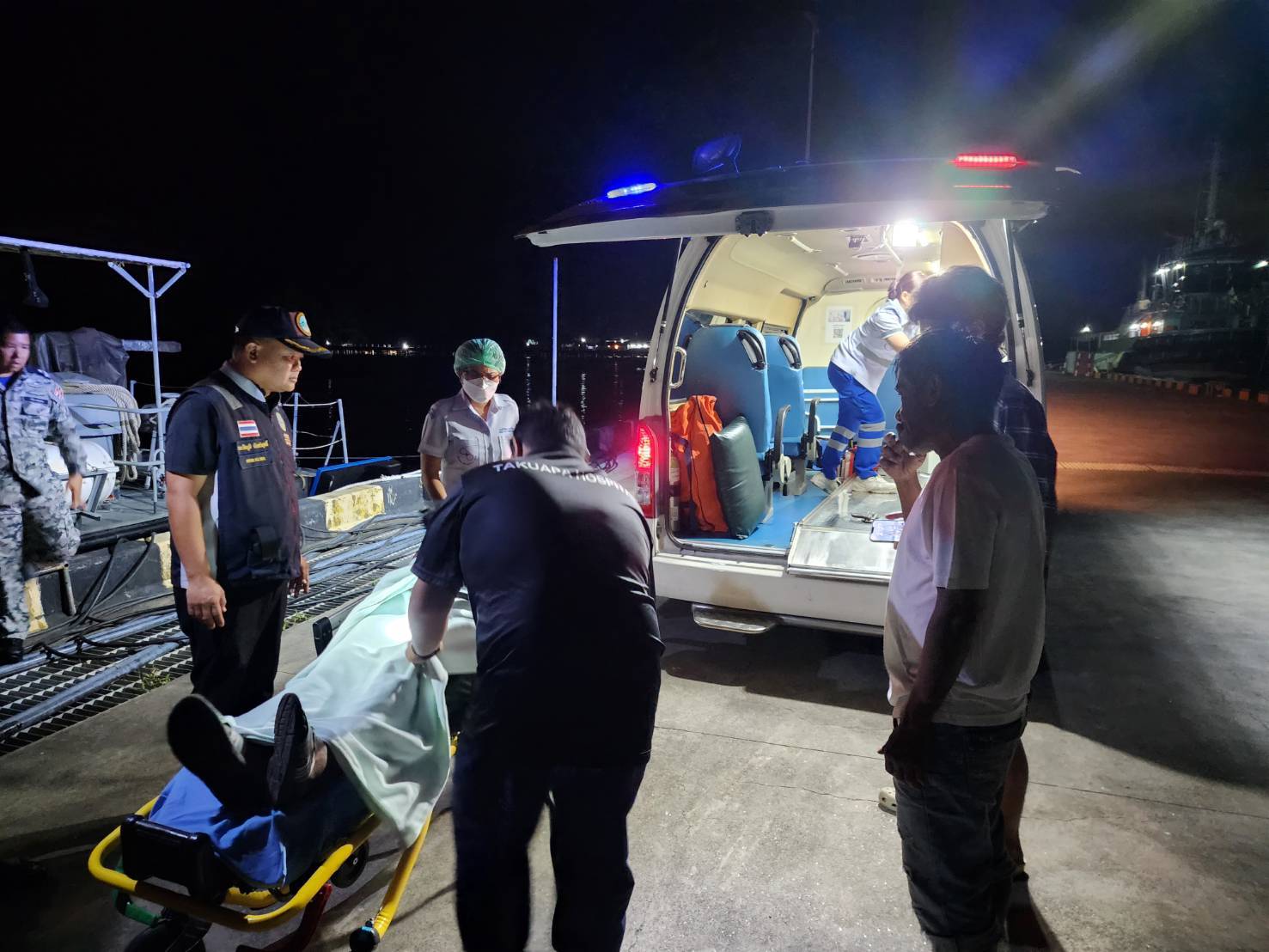 ๒.๒ จัด จนท.ประสานความมั่นคงท่าเรือ อำนวยความสะดวกในการรับผู้ป่วย รวมทั้งประสาน จนท.ศูนย์การเเพทย์เขาหลัก ในการให้การช่วยเหลือ ณ ท่าเทียบเรือ ฐท.พง.ทรภ.๓ ผู้ควบคุมเรือปลอดภัย