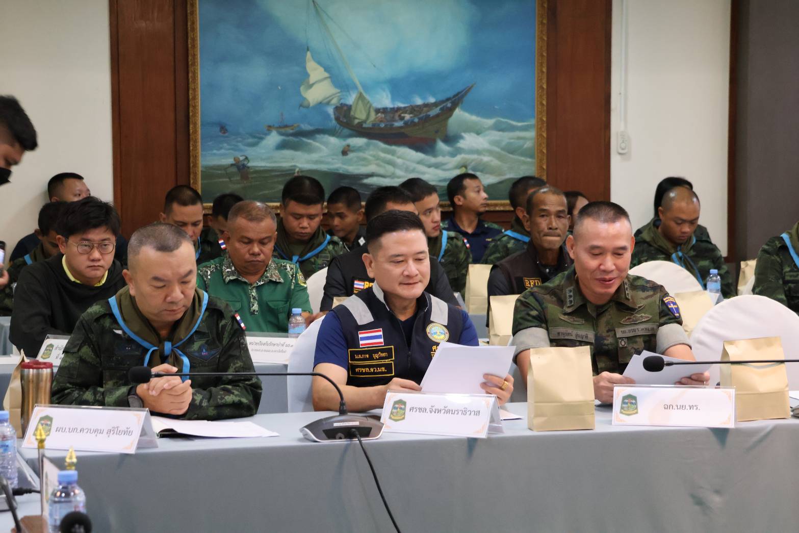 ในการนี้ หัวหน้าส่วนราชการ หน่วยงานความมั่นคง และองค์กรปกครองส่วนท้องถิ่นในพื้นที่จังหวัดนราธิวาส ได้เข้าร่วมหารือเพื่อรายงานผลการปฏิบัติงาน รับทราบปัญหาข้อขัดข้อง และเสนอแนะแนวทางในการแก้ไขปัญหาตามแนวชายแดน ทั้งในส่วนของทางบกและทางทะเลบริเวณเขตติดต่อกับประเทศเพื่อนบ้าน เพื่อให้การจัดระเบียบพื้นที่ชายแดนเป็นไปด้วยความเรียบร้อยและเกิดความมั่นคงสูงสุด