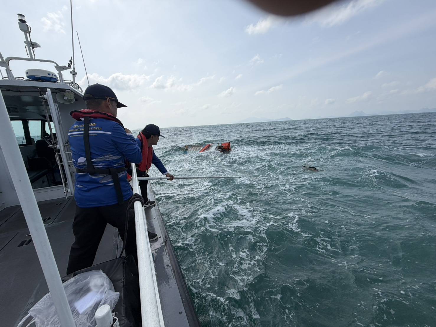 ในวันที่ 22 มกราคม 2569 เวลา 08.00 น. ศรชล.จว.สุราษฎร์ธานี นำเรือปฏิบัติการความเร็วสูงบริเวณชายฝั่งพร้อมกำลังพล สนับสนุนสำนักงานเจ้าท่าภูมิภาคสาขาสุราษฎร์ธานี เข้าตรวจสอบกรณีได้รับแจ้งพบเรือจมลอยปริ่มน้ำบริเวณเส้นทางการเดินเรือระหว่าง อ.ดอนสัก ไปยัง อ.เกาะสมุย