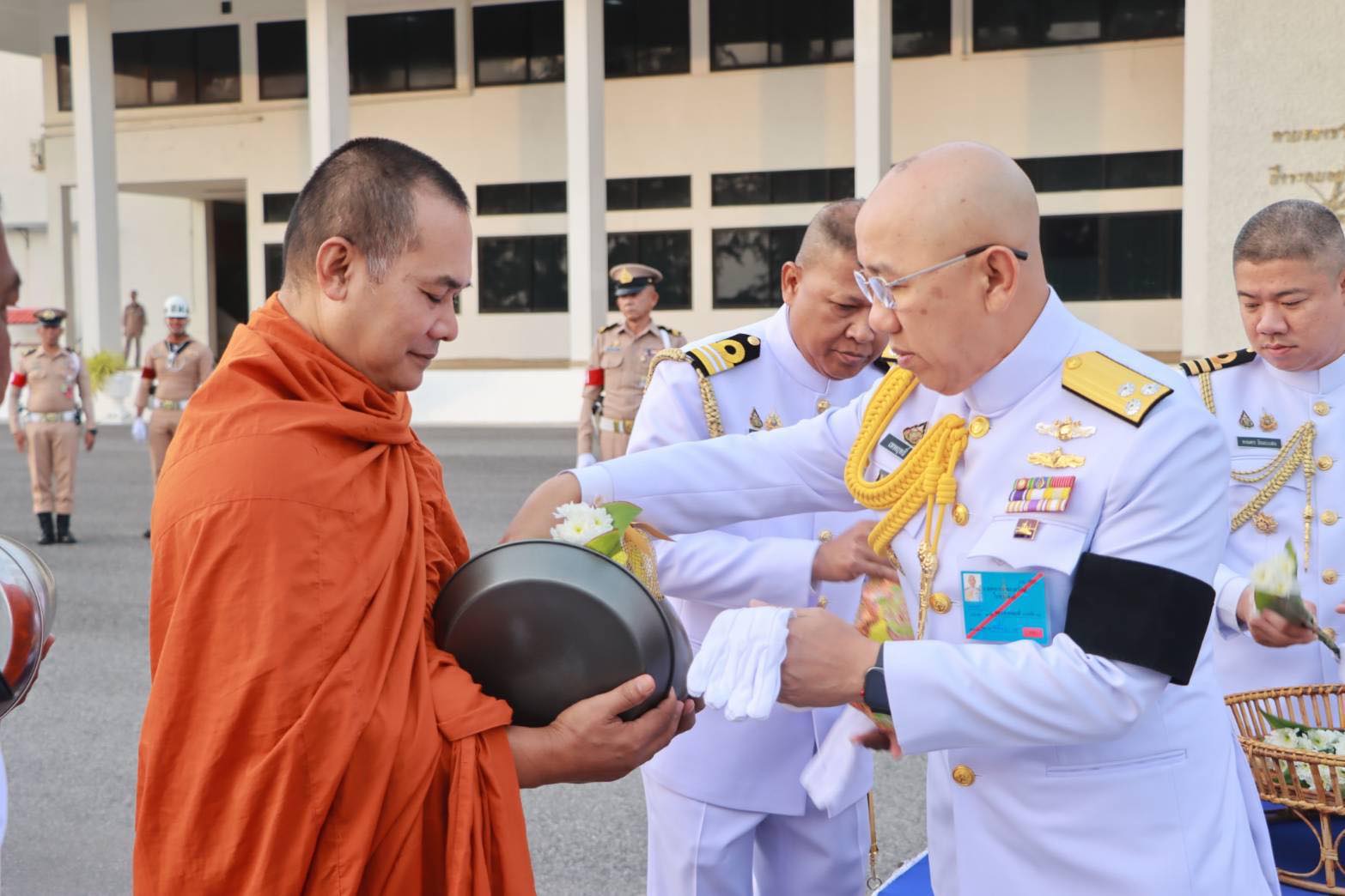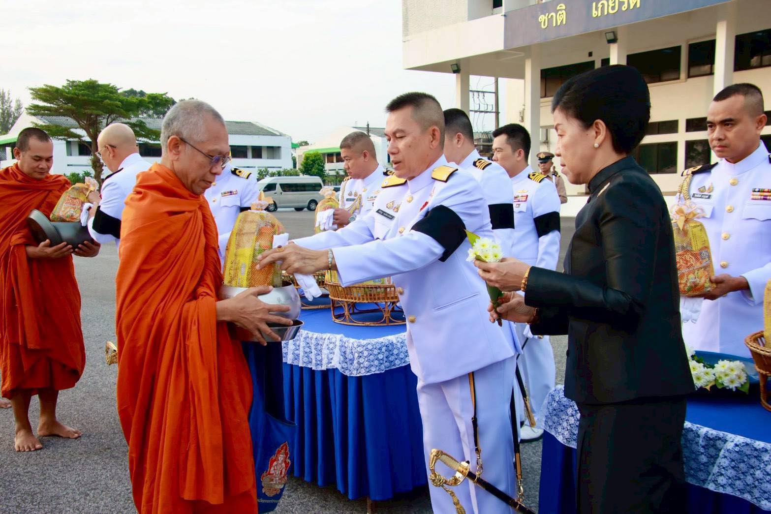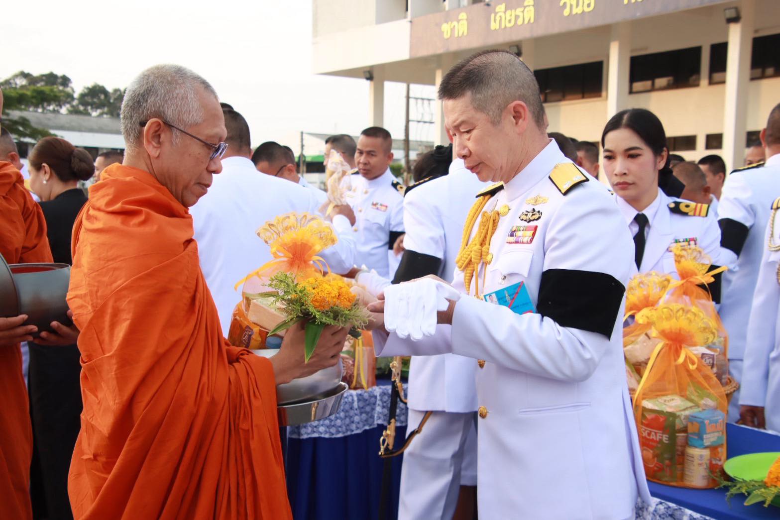 ที่ 2 กำลังพลข้าราชการศูนย์อำนวยการรักษาผลประโยชน์ของชาติในทะเลภาค 2 และชมรมภริยาทหารเรือพื้นที่จังหวัดสงขลาร่วมพิธี