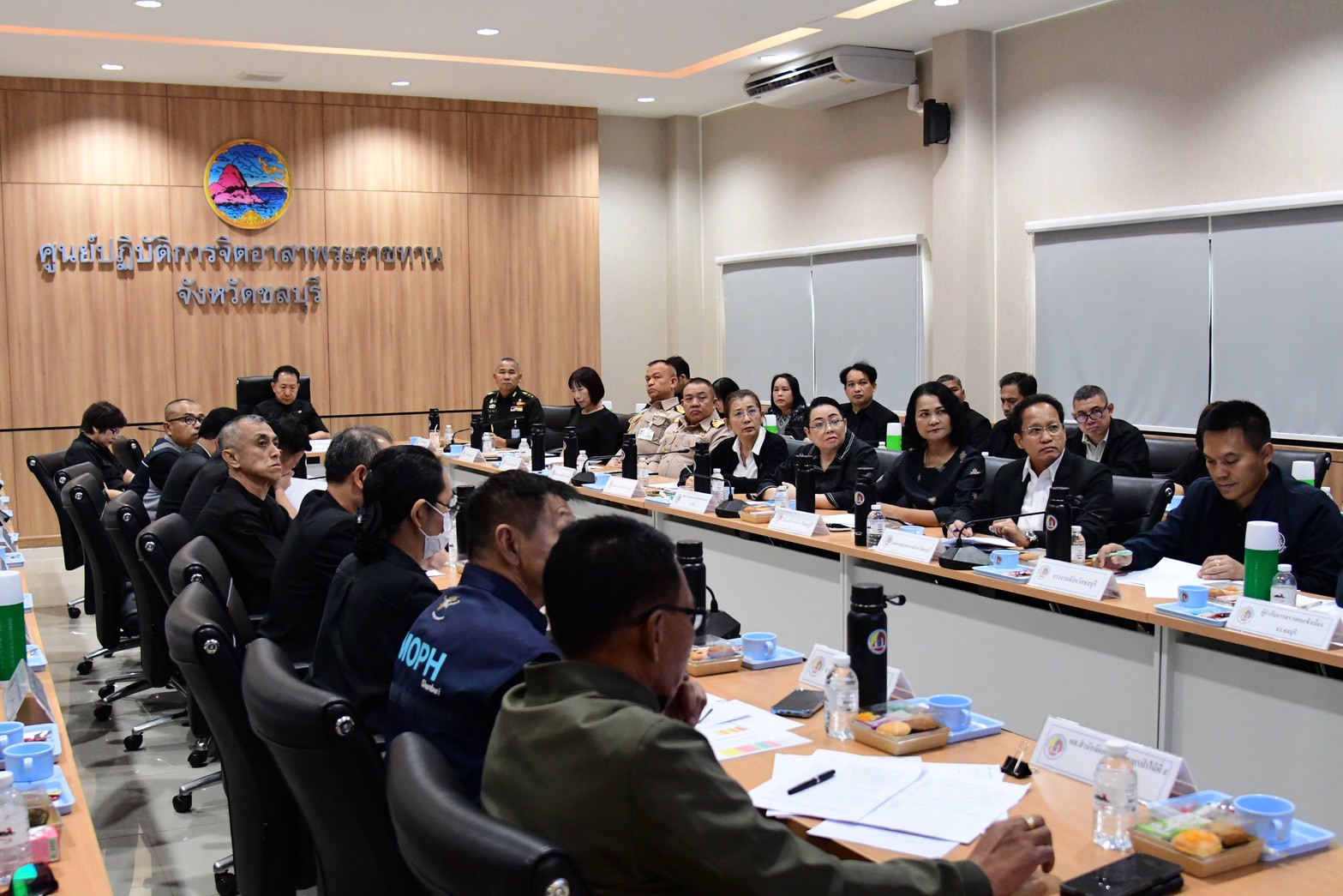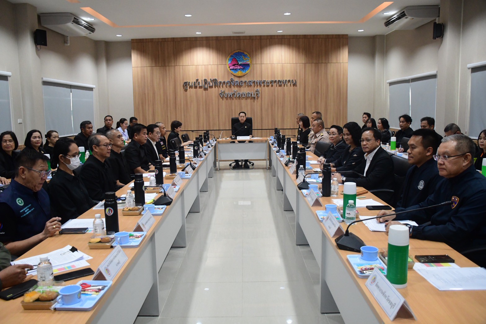 โดยมี นายนริศ นิรามัยวงศ์ ผู้ว่าราชการจังหวัดชลบุรี เป็นประธานในการประชุม เพื่อติดตามสถานการณ์และบูรณาการการดำเนินงานด้านความมั่นคงภายในพื้นที่จังหวัดชลบุรี