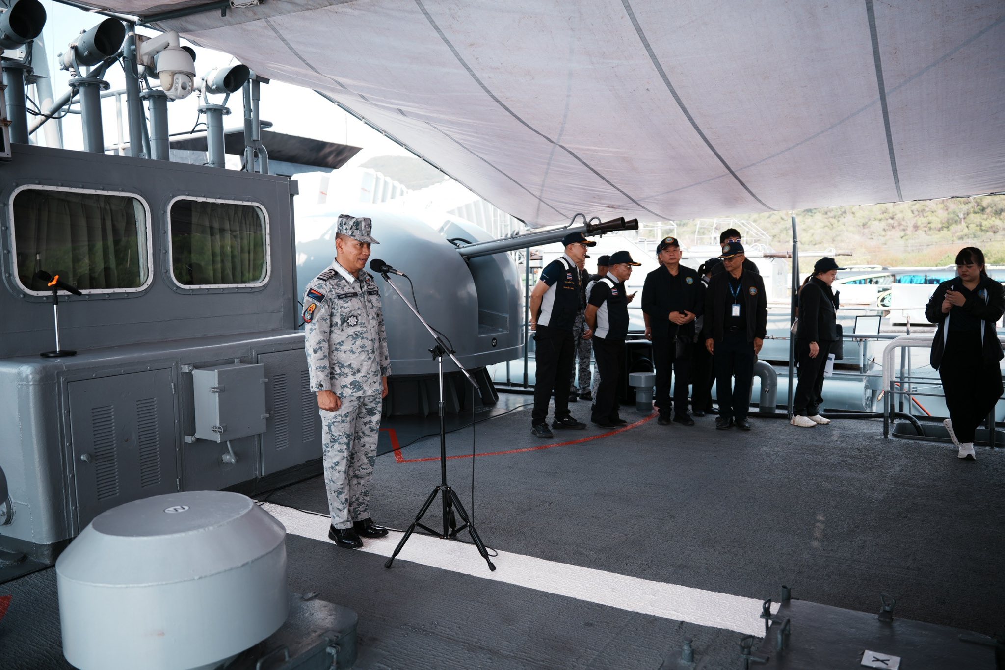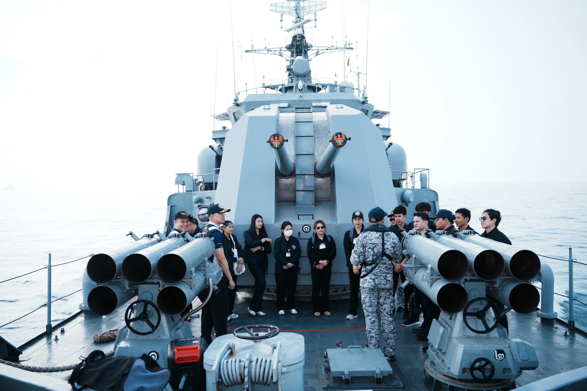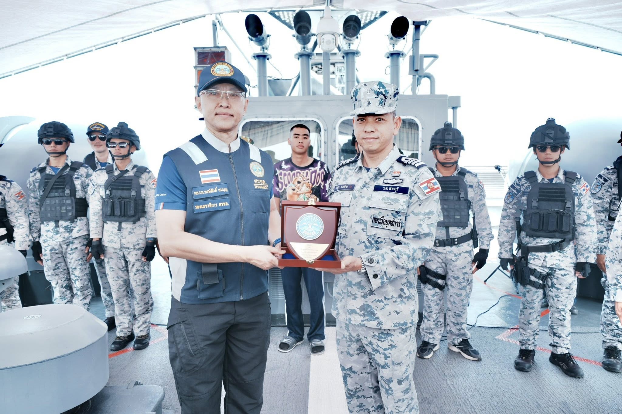 ในวันที่ 31 มกราคม 2569 เวลา 09.00 น. พลเรือโทพงษ์ศักดิ์ สมบุญ รองเลขาธิการ ศรชล. และคณะฯ นำข้าราชการบรรจุใหม่ ในหลักสูตรพัฒนากำลังพล ศรชล. "ต้นกล้าข้าราชการ ศรชล." ลงพื้นที่เรียนรู้การปฏิบัติการบน เรือหลวงสายบุรี โดยมี น.อ.เจษฎา คงคล้าย ผู้บังคับการเรือหลวงสายบุรี ให้การต้อนรับ ณ ท่าเรือแหลมเทียน จว.ชลบุรี ซึ่งมีผู้เข้าร่วมกิจกรรมฯ ทั้งสิ้น 60 คน โดยกิจกรรมประกอบด้วยการแบ่งกลุ่มเยี่ยมชมสถานีสำคัญประจำเรือ เพื่อเรียนรู้ระบบการทำงานและการสั่งการ ได้แก่ ห้องศูนย์ยุทธการ, สะพานเดินเรือ และบริเวณหัวเรือ พร้อมทั้งรับชมการสาธิตการปฏิบัติภารกิจทางทะเลที่เข้มข้น ในหัวข้อ "การตรวจค้นเรือต้องสงสัย" โดยชุดตรวจค้นเพื่อให้เข้าใจยุทธวิธีและขั้นตอนการบังคับใช้กฎหมายทางทะเลอย่างถูกต้องและปลอดภัย กิจกรรมในครั้งนี้มีวัตถุประสงค์เพื่อให้ต้นกล้าข้าราชการ ศรชล. เข้าใจบริบทการปฏิบัติงานในทะเล รวมถึงสร้างความตระหนักรู้ในการรักษาผลประโยชน์ของชาติทางทะเล เพื่อให้พร้อมเป็นกำลังสำคัญในการบูรณาการร่วมกับหน่วยงานต่างๆ ได้อย่างมีประสิทธิภาพสูงสุด