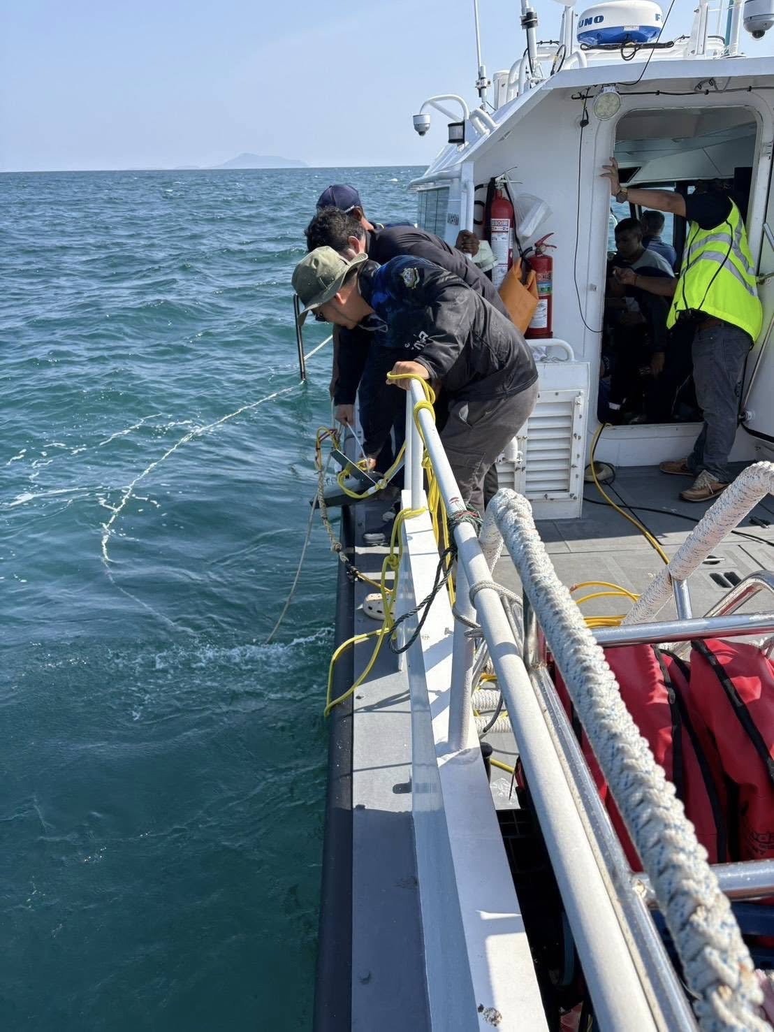 2. ภารกิจค้นหา รวบรวม และเก็บกู้ตู้คอนเทนเนอร์ โดยมอบหมายให้ ร.ล.หัวหิน ทำหน้าที่ On Scene Commander โดยประสานกรมเจ้าท่าจัดเรือลากจูงจากท่าเรือน้ำลึกช่วยลากตู้เข้าหาเรือ Barge พร้อมส่ง ร.ล.ปันหยี เข้าสนับสนุนการลาก และมีเรือ ตรน., ทีมโดรน และเรือเจ้าท่า 801 ร่วมสนับสนุนการปฏิบัติ โดยมีผลการดำเนินงานดังนี้