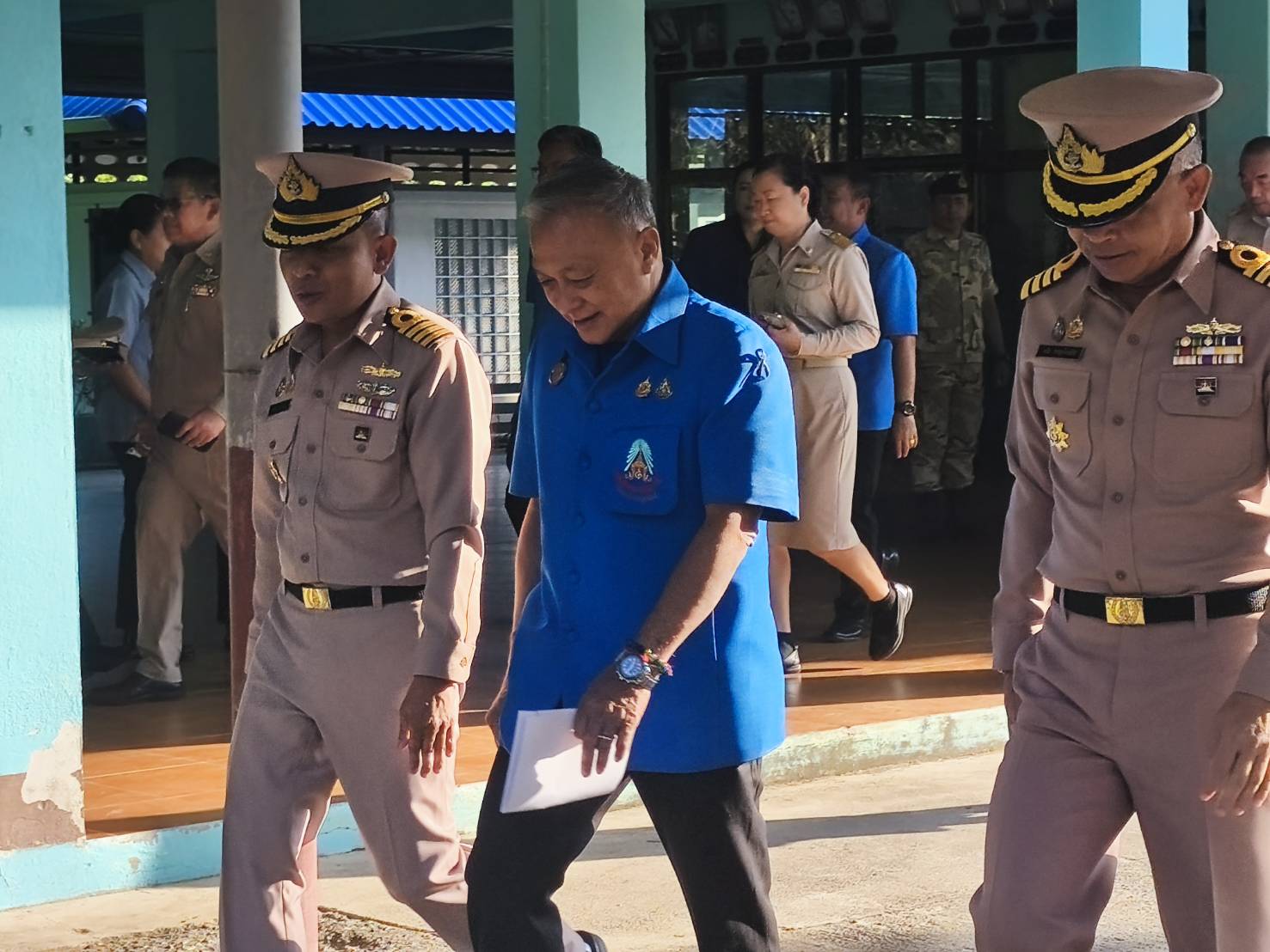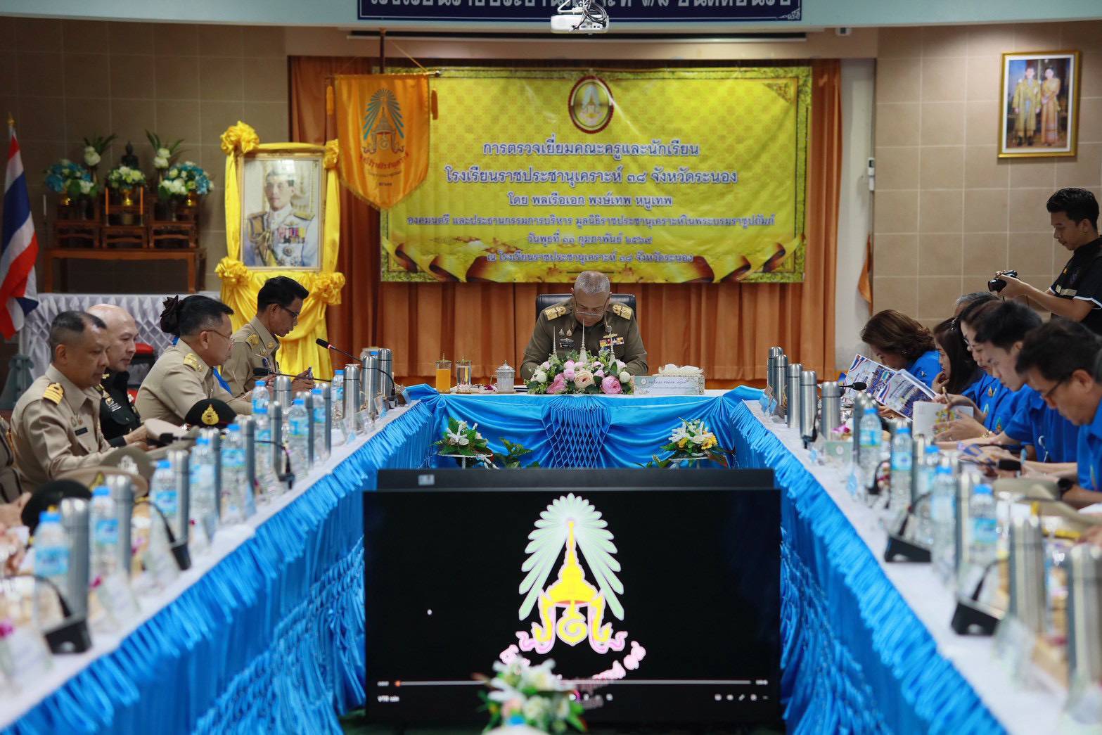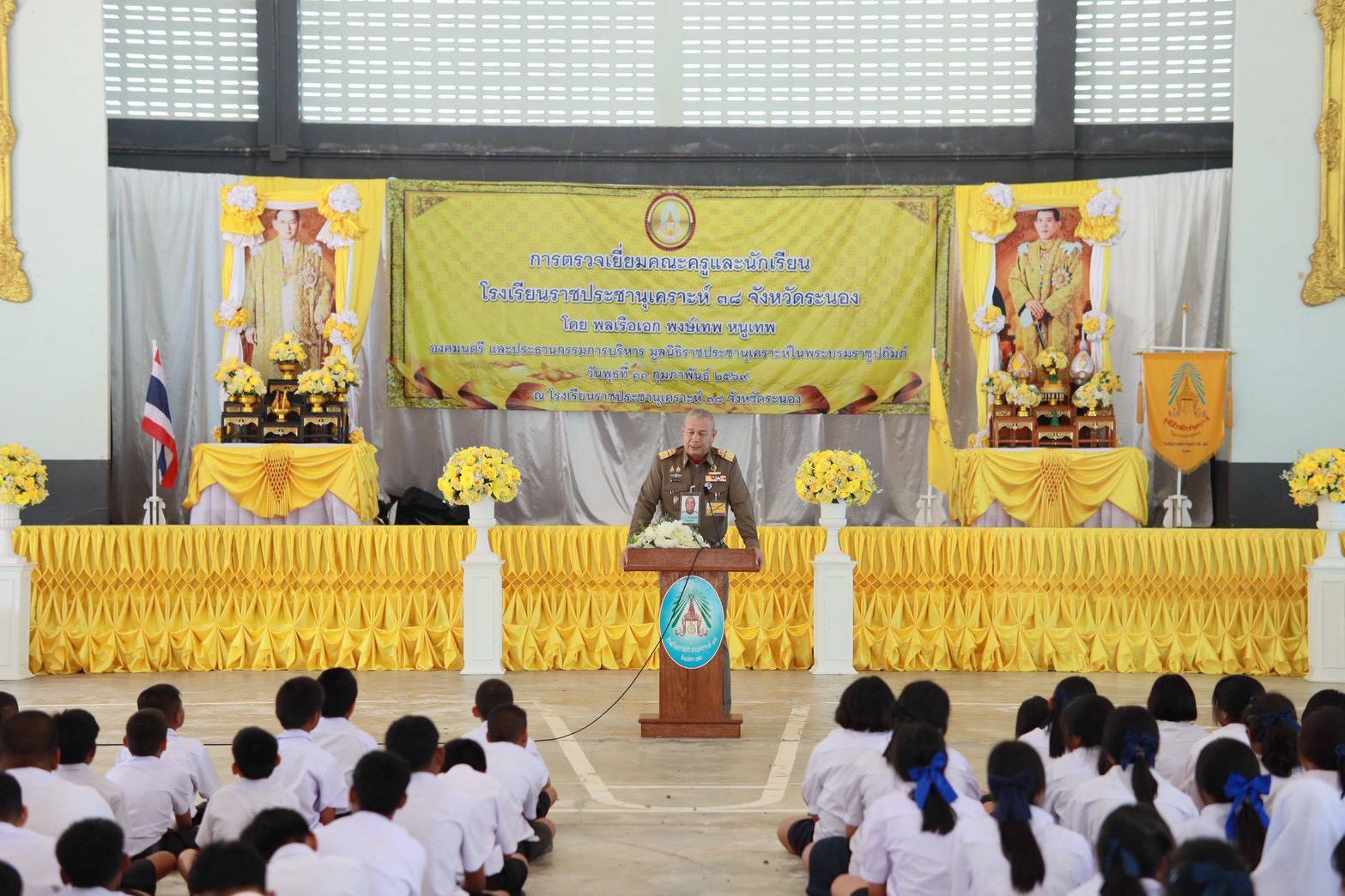 ในโอกาสเดินทางมาตรวจเยี่ยมและติดตามผลการดำเนินงานของ โรงเรียนราชประชานุเคราะห์ 38 ณ ตำบลราชกรูด อำเภอเมือง จังหวัดระนอง เพื่อรับทราบสถานการณ์การเรียนการสอน ความเป็นอยู่ของนักเรียน และมอบนโยบายเพื่อพัฒนาคุณภาพการศึกษาของโรงเรียนในโครงการพระราชดำริต่อไป
