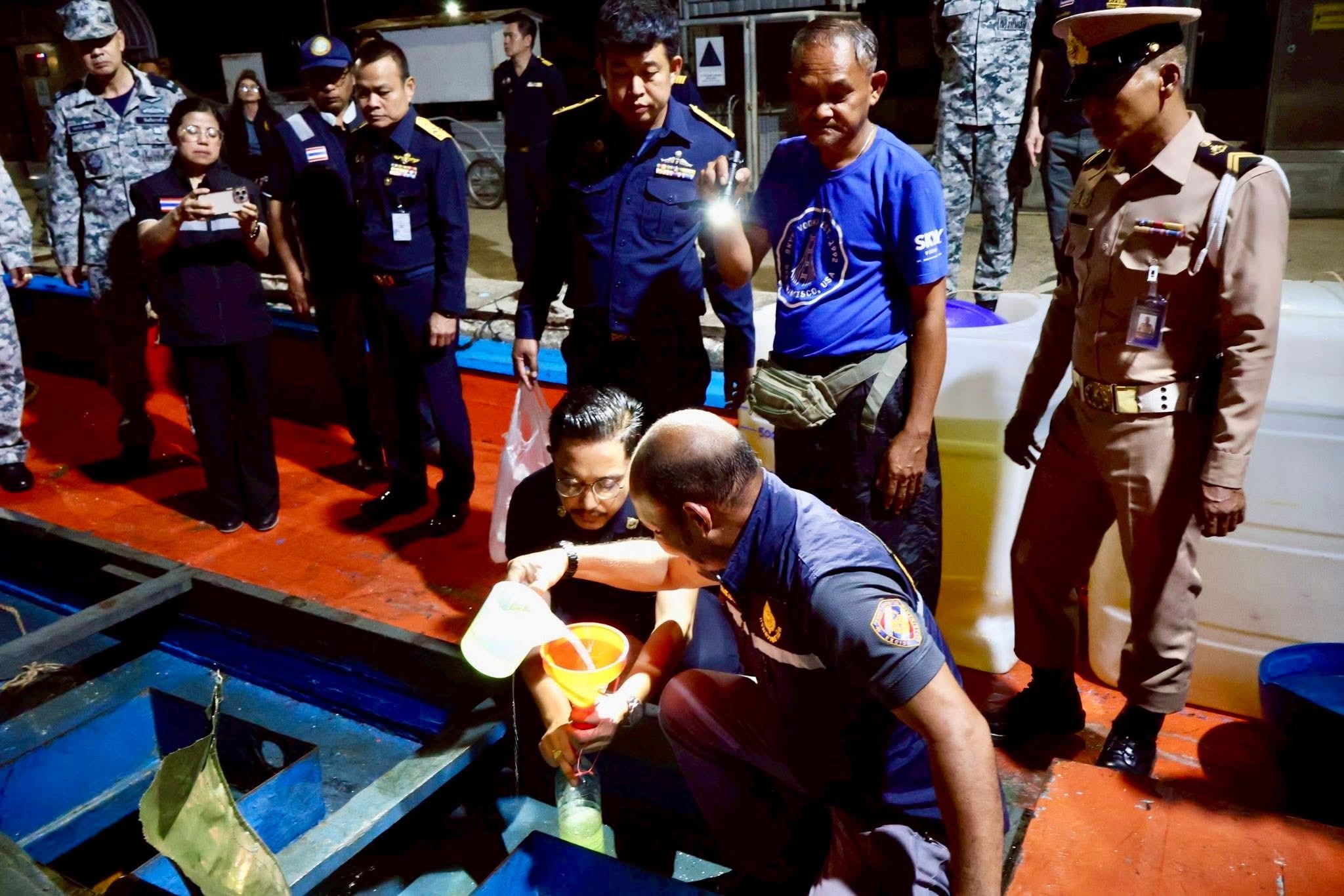 ตรวจพบเรือประมงดัดแปลง ภายในพบน้ำมันดิบไม่ผ่านพิธีทางศุลกากร จำนวนประมาณ 13,000 ลิตร จึงได้ดำเนินการเข้าจับกุม ประสานงานร่วมกับสรรพสามิตพื้นที่จังหวัดสงขลา ดำเนินการตามกฎหมายและได้ควบคุมเรือของกลางพร้อมลูกเรือ เดินทางกลับมายังท่าเทียบเรือ ฐานทัพเรือสงขลา ทัพเรือภาคที่ 2 เพื่อสอบสวนและดำเนินคดีต่อไป