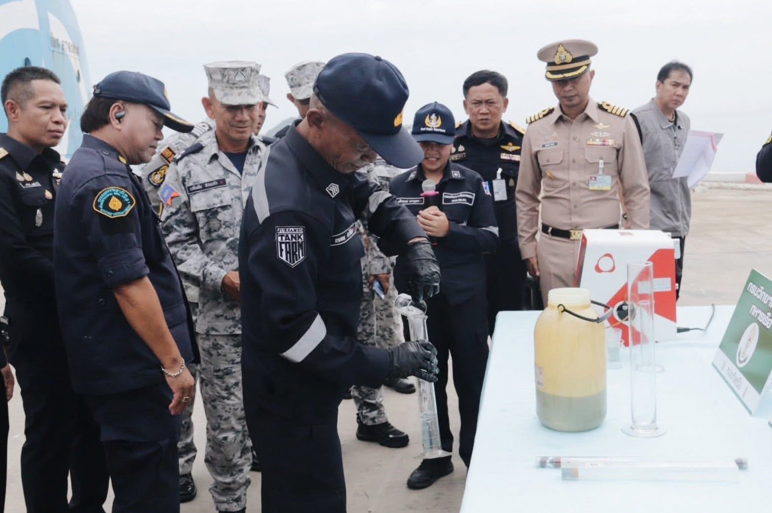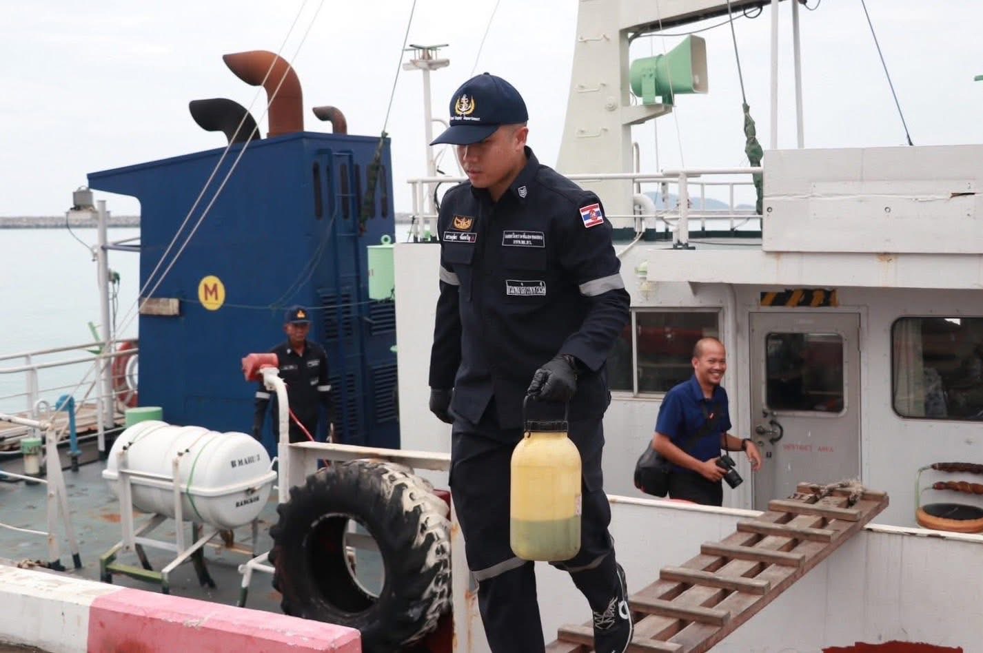 การแถลงข่าว สืบเนื่องจากเมื่อวันที่ 10 มีนาคม 2569 หมวดเรือพิทักษ์อ่าวไทย ทัพเรือภาคที่ 1 จัดเรือ ต.991 ออกลาดตระเวนตรวจพบเรือบรรทุกน้ำมันชื่อ "บี มารู 3" (B MARU 3) มีลักษณะบรรทุกน้ำมันเต็มระวาง จากการตรวจสอบข้อมูลกับศูนย์ปฏิบัติการทัพเรือภาคที่ 1 และ ศรชล.ภาคที่ 1 พบว่าเรือลำดังกล่าวมีเส้นทางเดินเรือมาจากด้านใต้ของอ่าวไทย และมีพฤติกรรมน่าสงสัยได้เข้าตรวจสอบเรือ บริเวณด้านทิศใต้ของทุ่นไฟปากร่องเจ้าพระยา ระยะประมาณ 2.58 ไมล์ทะเล ผลการตรวจสอบพบลูกเรือจำนวน 6 คน เป็นชาวไทยทั้งหมด และไม่พบเอกสารประจำเรือรวมทั้งเอกสารประจำตัวลูกเรือ เมื่อตรวจสอบภายในระวางบรรทุกพบของเหลวที่มีลักษณะและกลิ่นคล้ายน้ำมันดีเชลจากการสอบถามเบื้องต้น ผู้ควบคุมเรือให้การว่าเป็น น้ำมันเสียจากการล้างท้องเรือ (Sludge Oil) อย่างไรก็ตาม ไม่สามารถระบุแหล่งที่มาของน้ำมันได้อย่างชัดเจน เจ้าหน้าที่จึงใช้อำนาจควบคุมเรือบีมารู 3 เข้ามาจอดที่ท่าเรือจุกเสม็ด ฐานทัพเรือสัตหีบ เพื่อดำเนินการตรวจสอบตามกฎหมาย